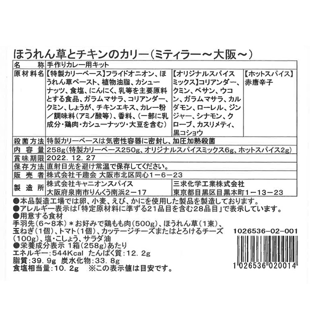 ほうれん草とチキンのカリー ※お届けする商品の賞味期限、消費期限とは異なります