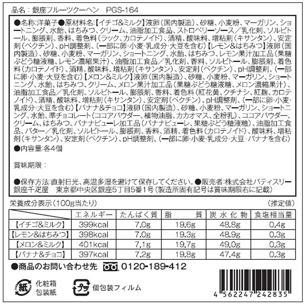 ●イチゴ&ミルク・レモン&はちみつ・メロン&ミルク・バナナ&チョコ:各4個(計16個)