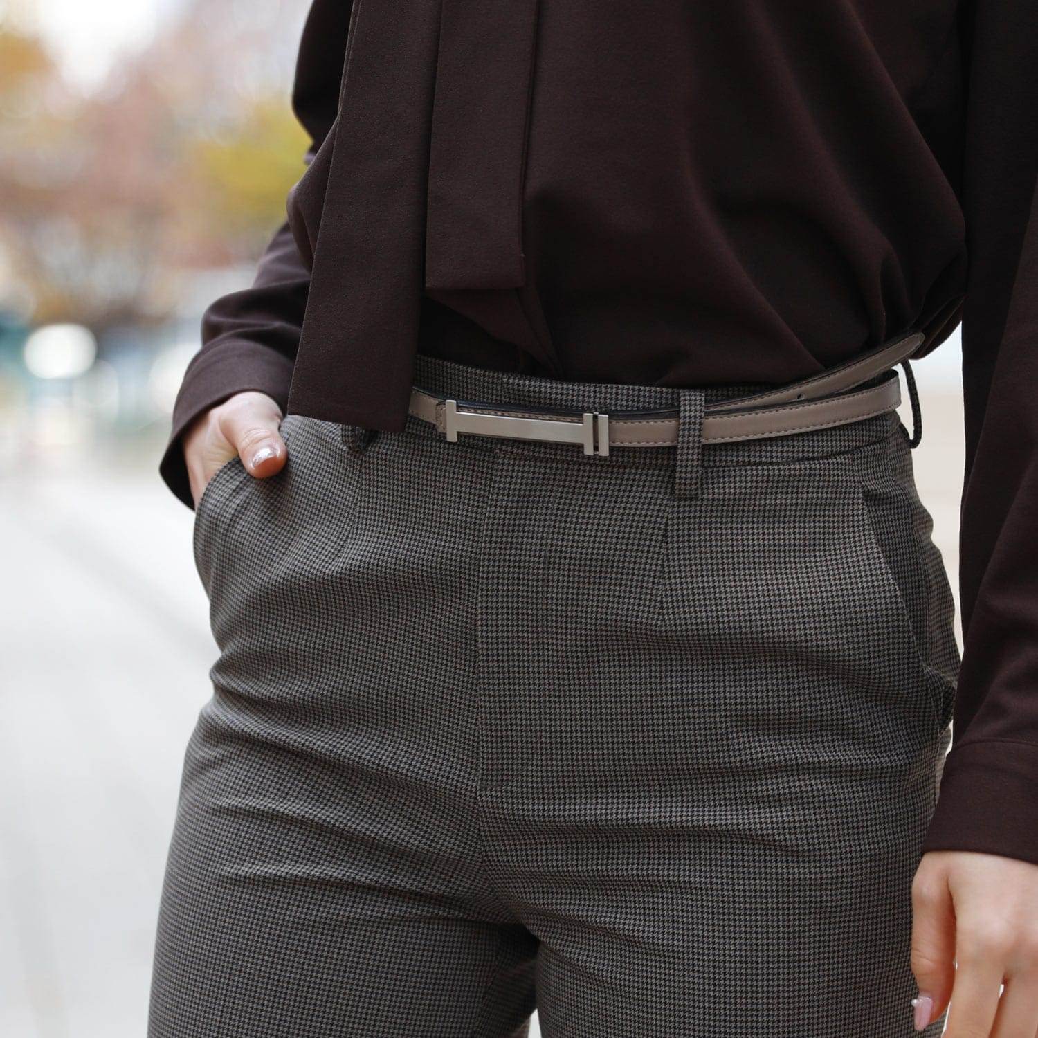・バックルはスタイリッシュなツヤ消しシルバーカラーが上品