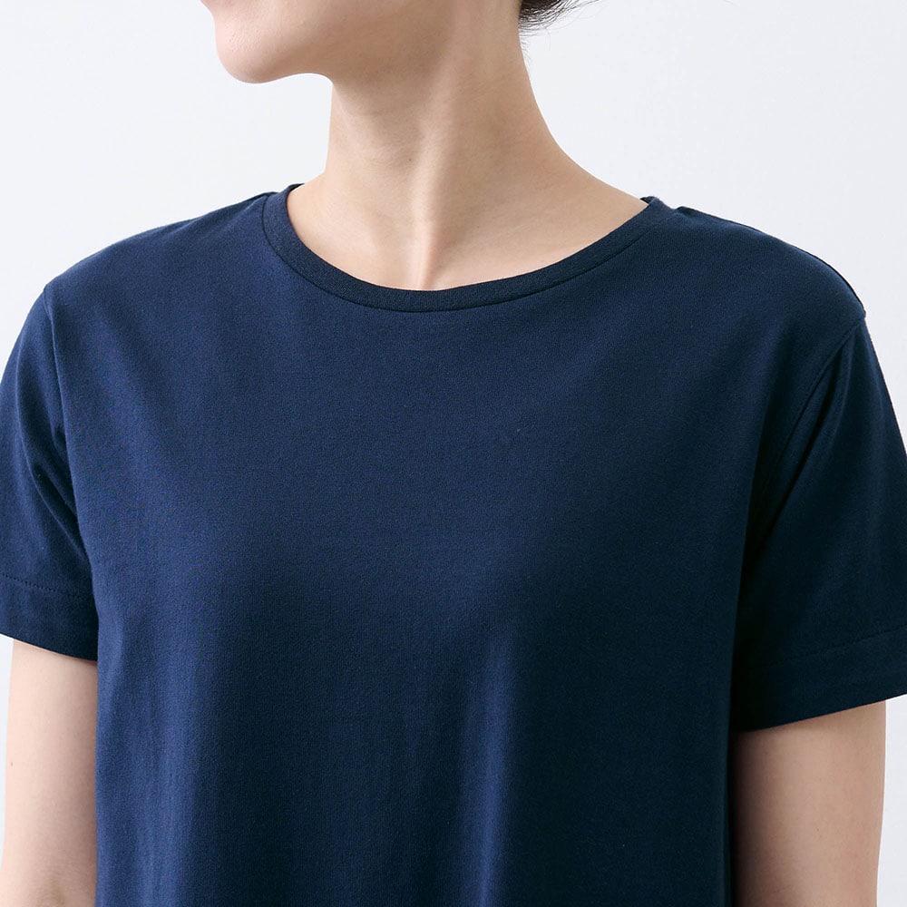 生地が少し厚手です。それと首回りの開きが狭い感じです。