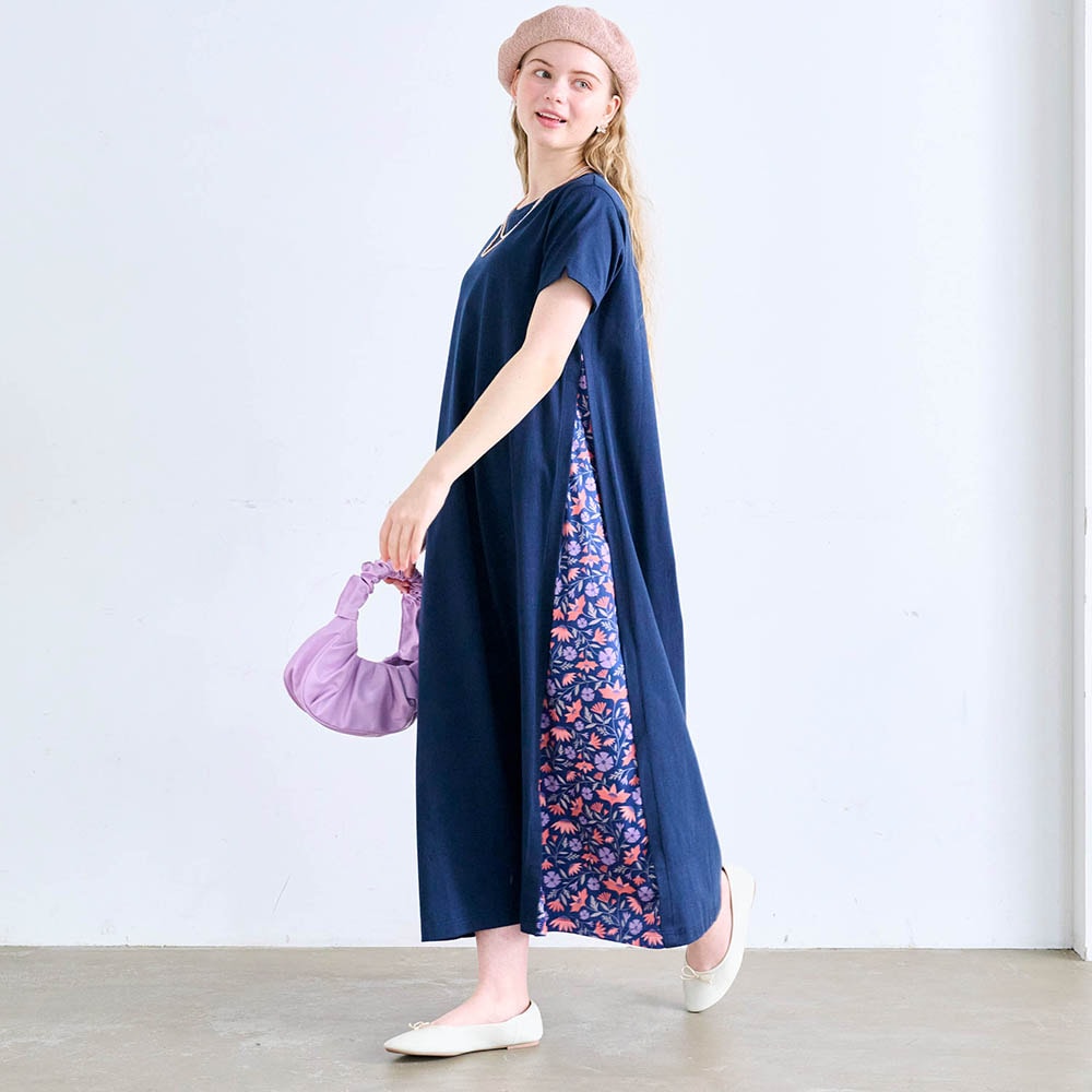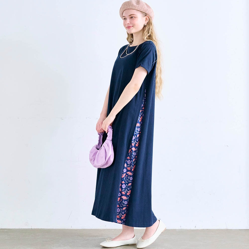 サイドの花柄の部分は、脇のちょっと下から始まっていて、本体の布地とは別生地です。