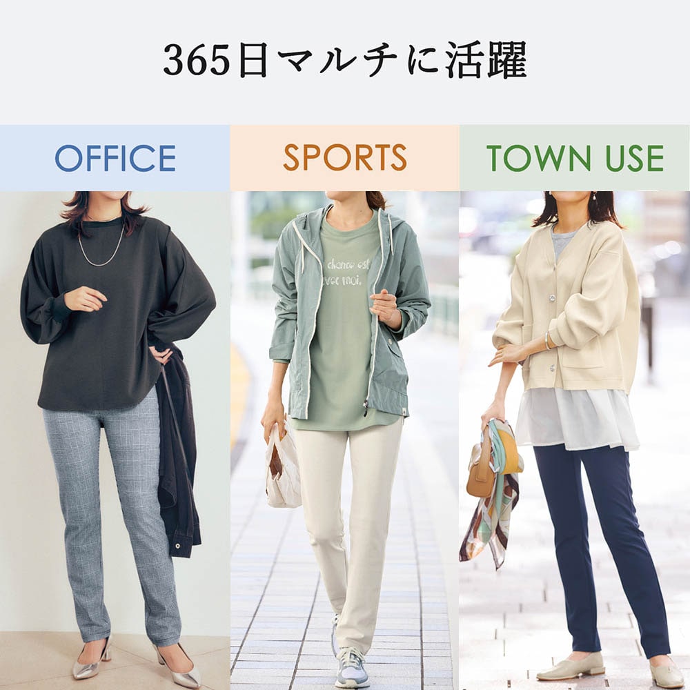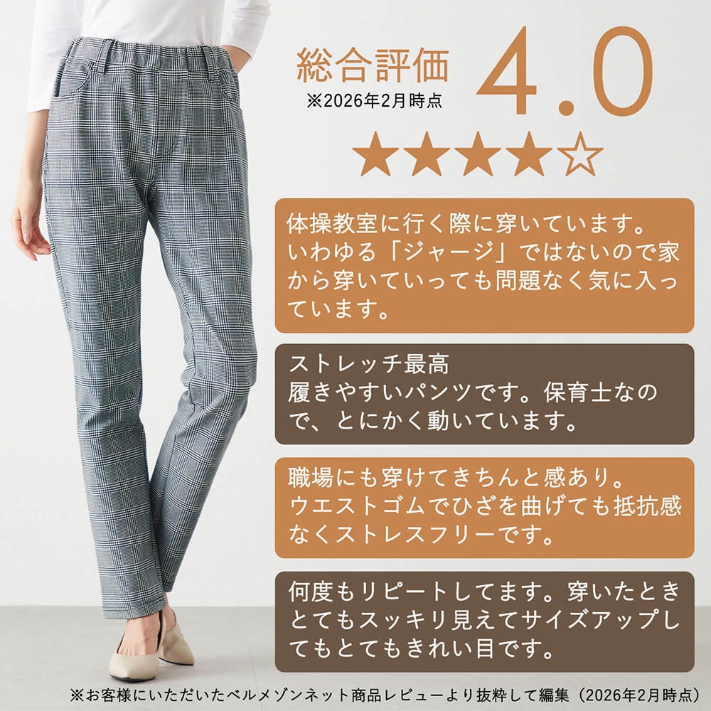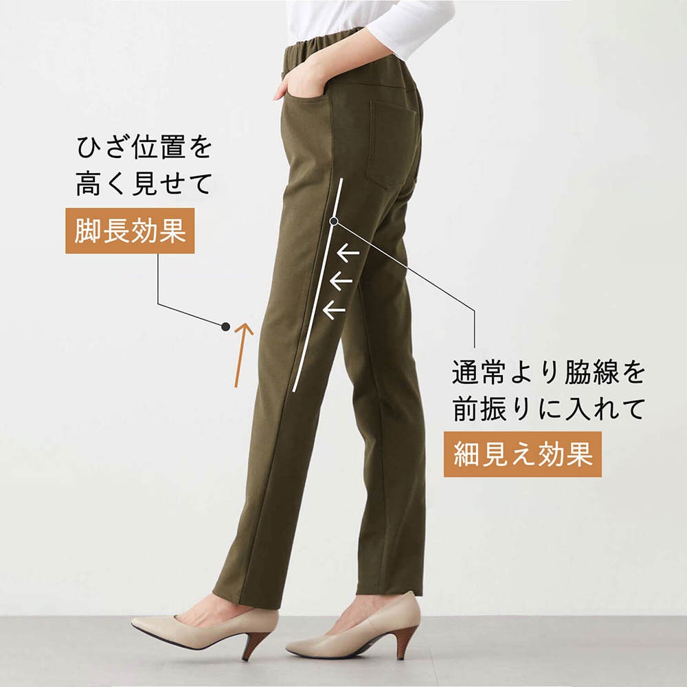 先に「ひんやり夏の美脚ジャージパンツ」を愛用してから、秋冬用にこちらを購入。 夏用と全然異なる素材で、こちらはスウェット感が強い素材です。 厚みがあるので温かく着ることはできますが、あまり伸びないように感じます。 贅沢を言えば、夏用の伸び縮みばっちりな素材感そのままで、厚みがあるものが理想です。 私の体型的に美脚に見えるか分かりませんが、圧倒的に夏用の方が着痩せして見えます。