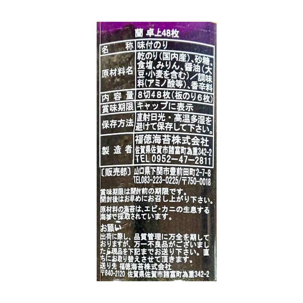 届いてすぐいただいてみましたが、もう少しパリパリした食感の海苔が好みです。
