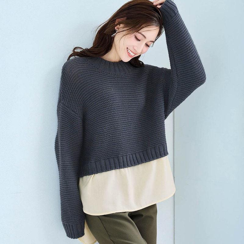 シャツレイヤード風クロップドニット 【TV newsおかえり で着用されました】