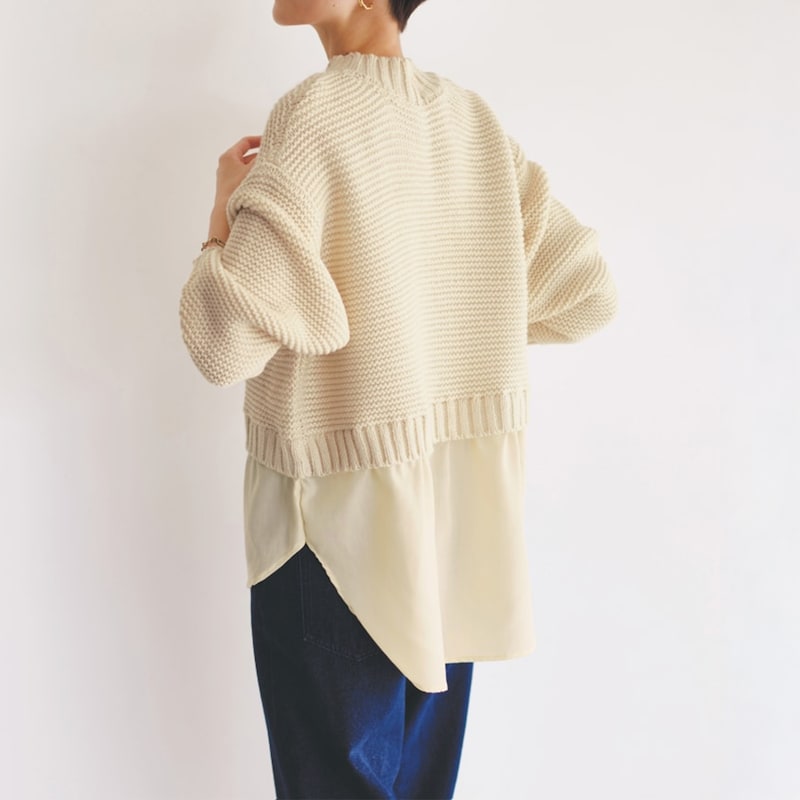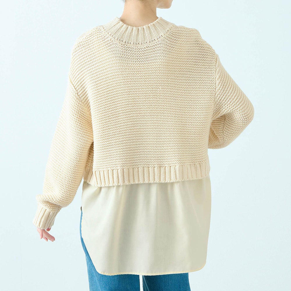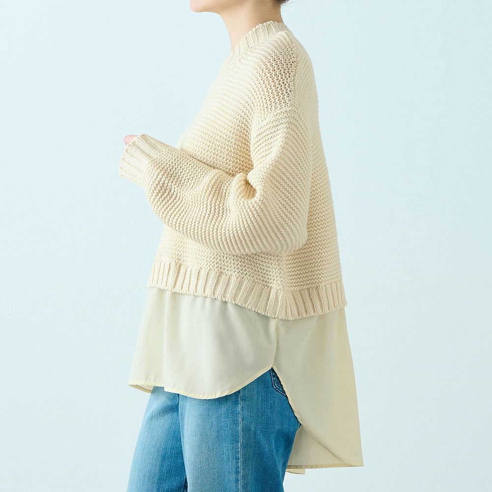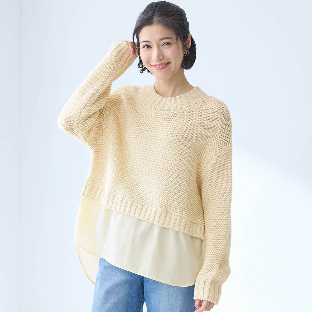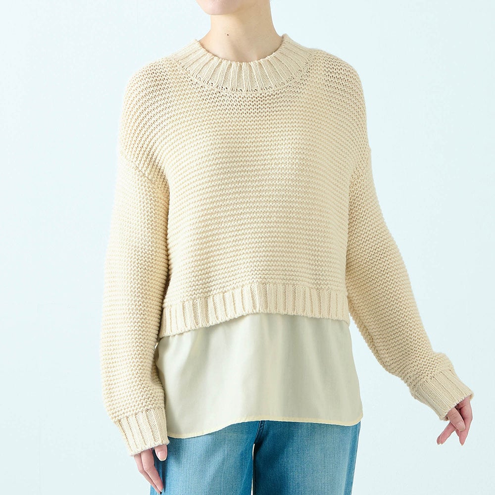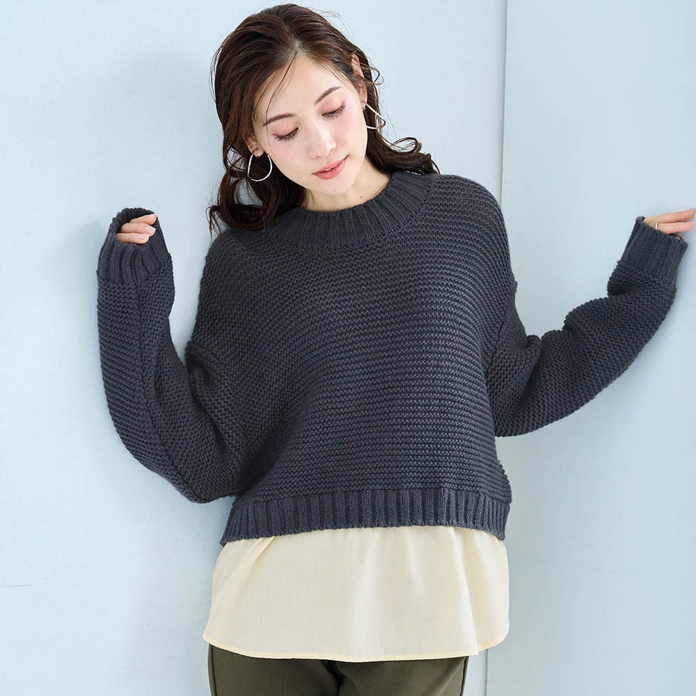 ・ニットとシャツの重ね着風デザイン