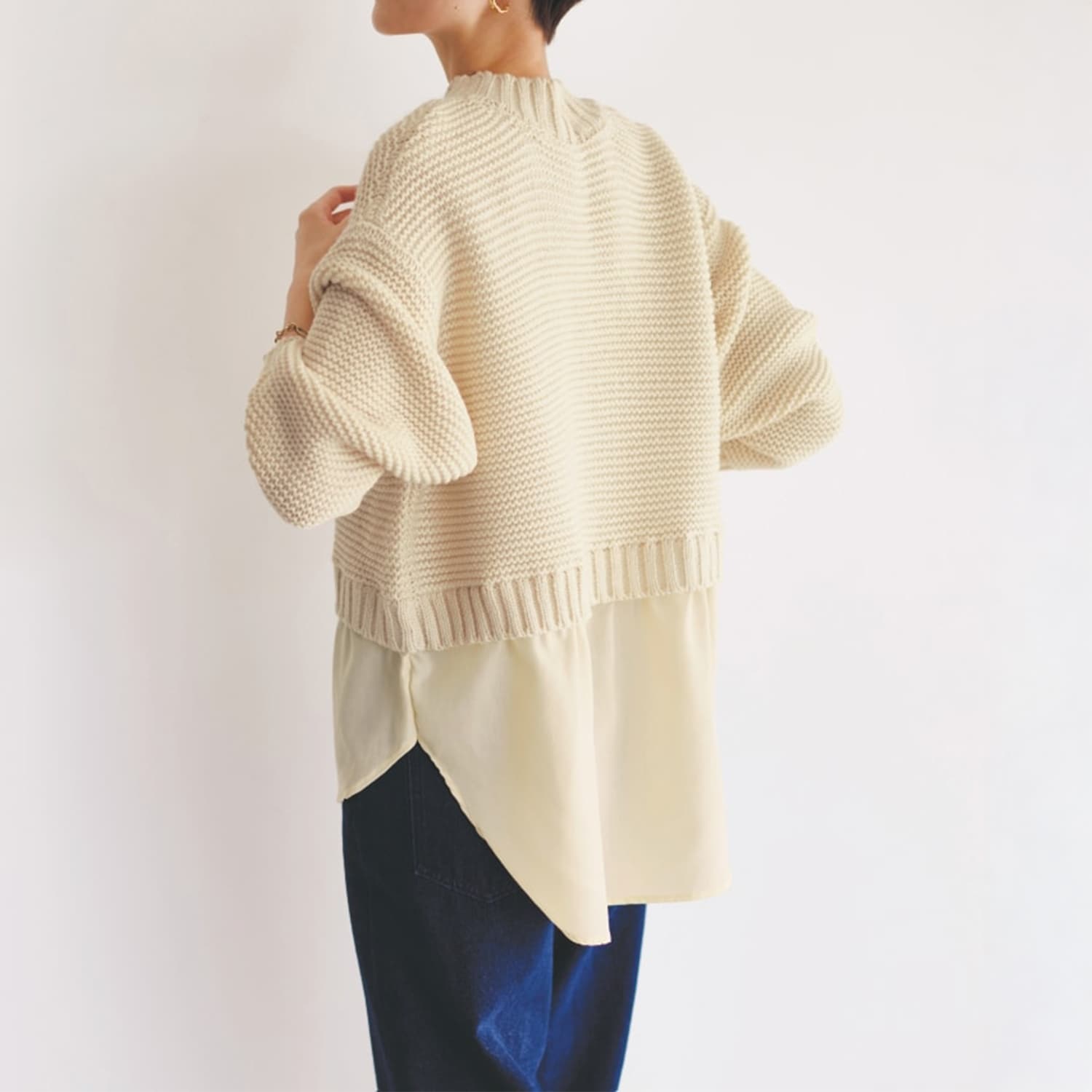 ・ざっくりとした質感のニットとさらっとした肌触りの