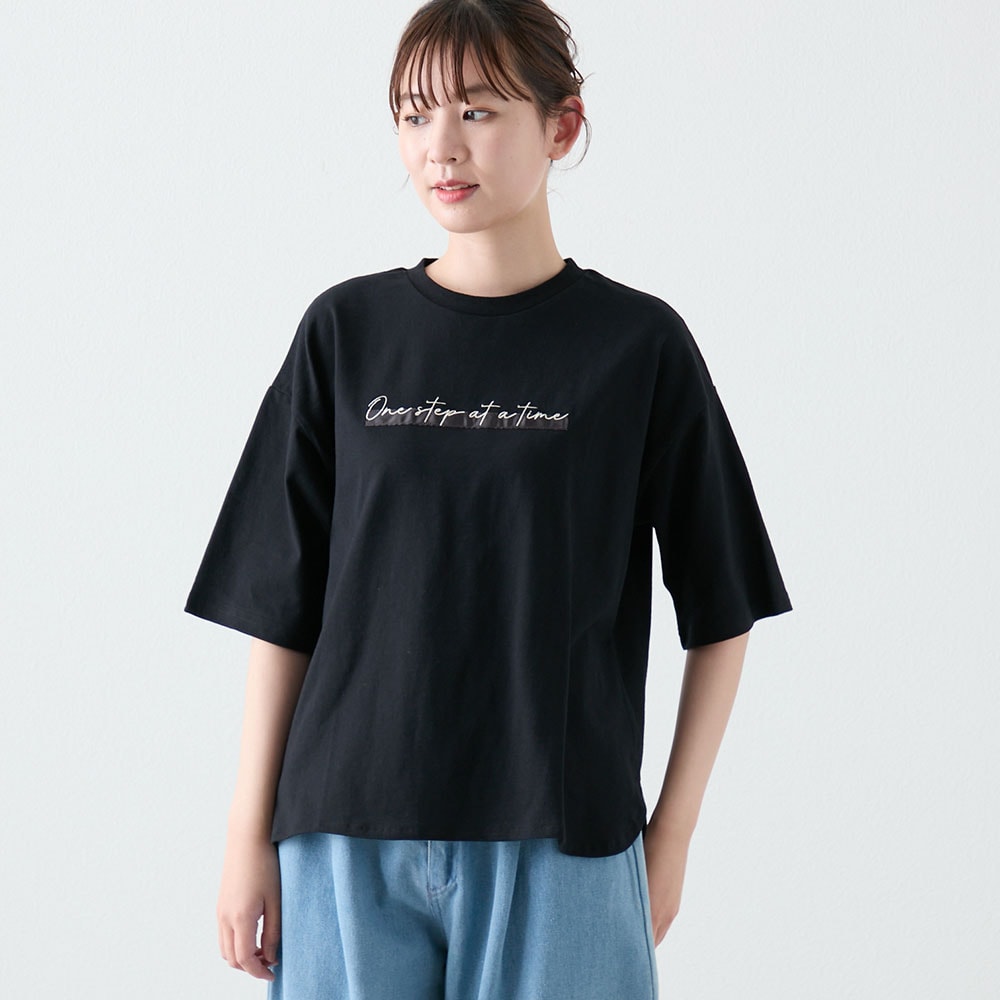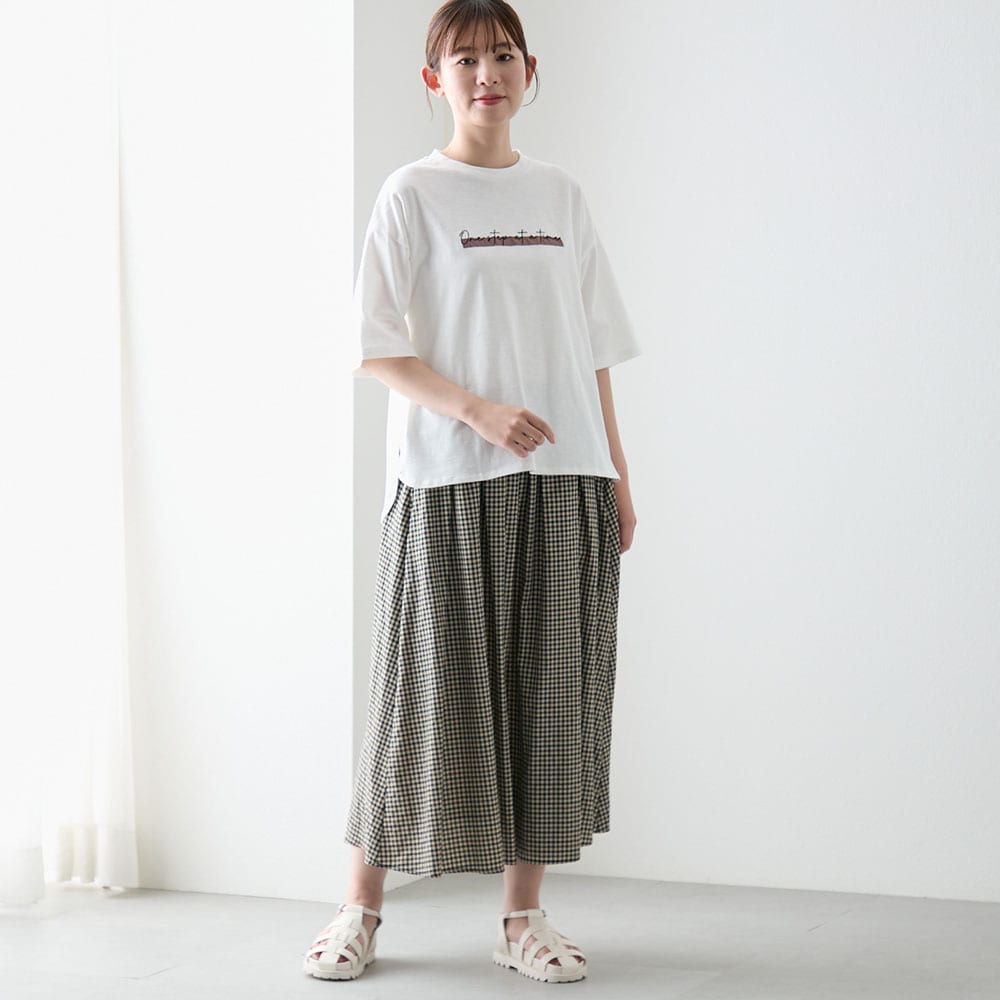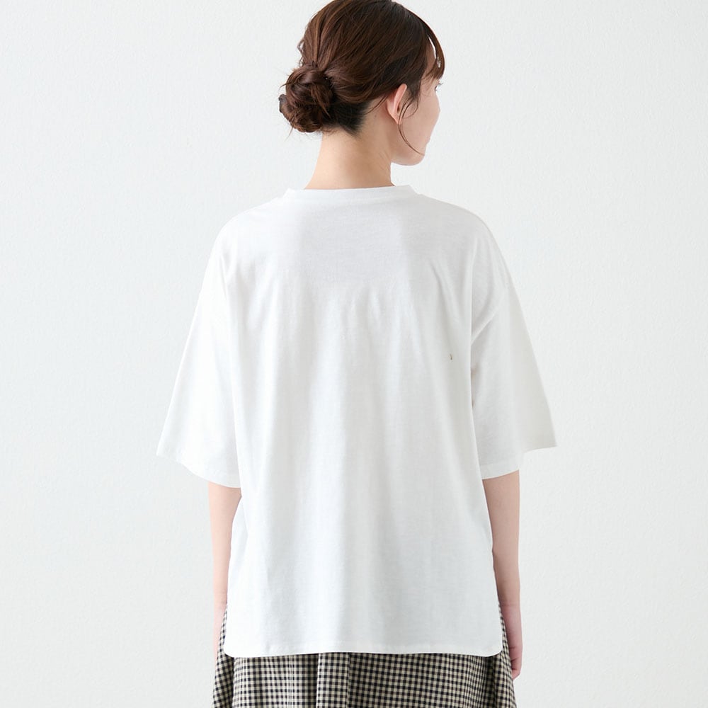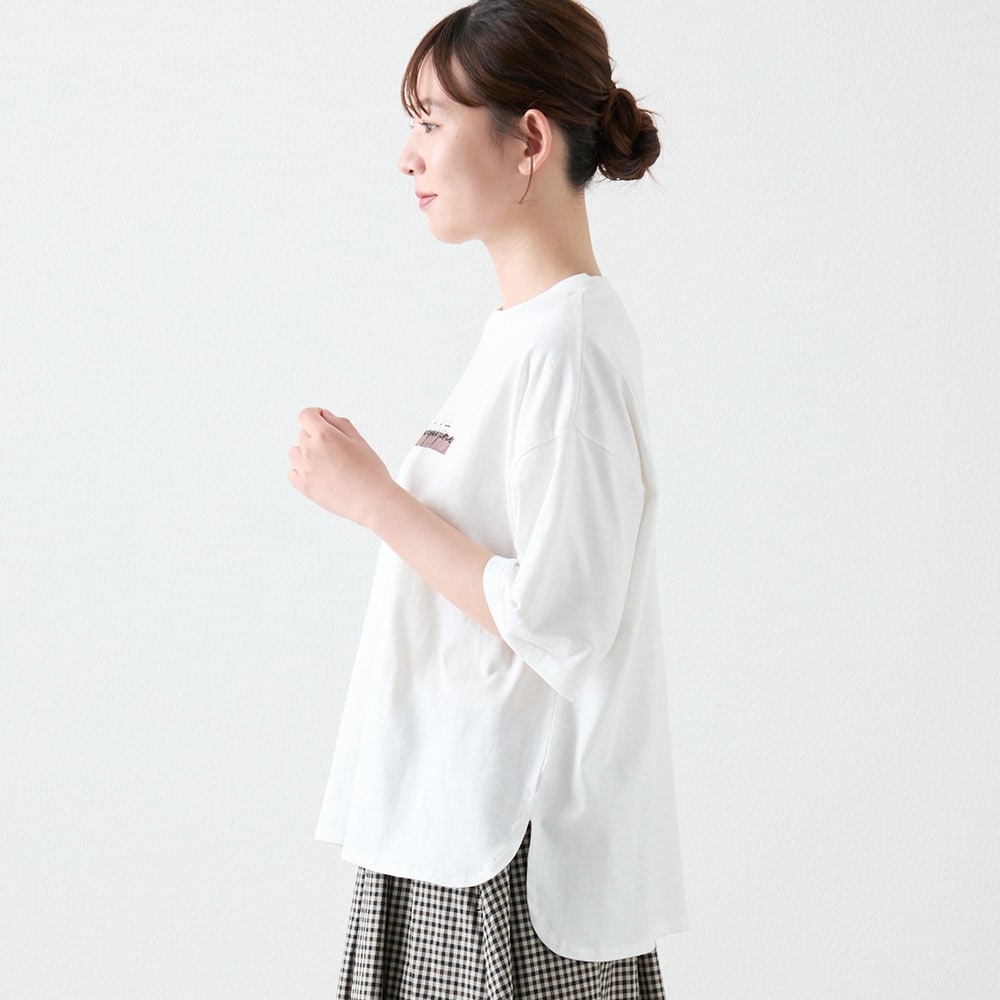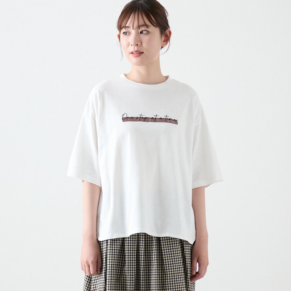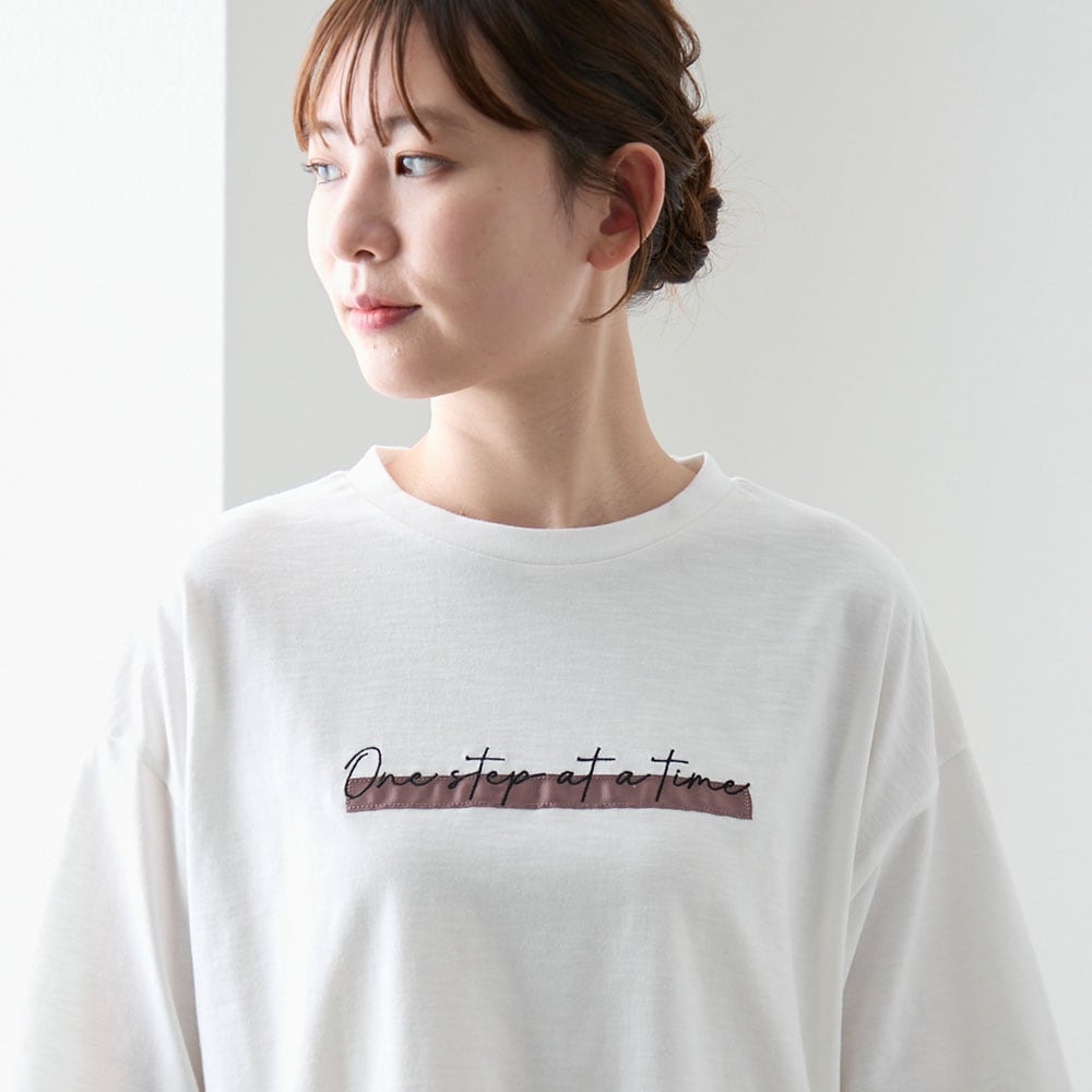 リラクシーな雰囲気漂う、ゆったり着られるロゴ入りTシャツ