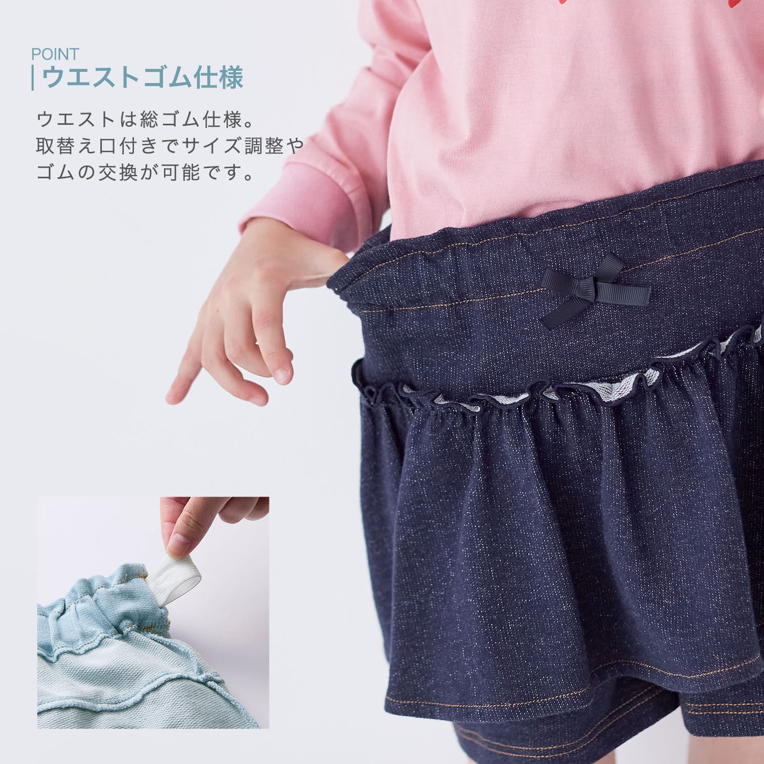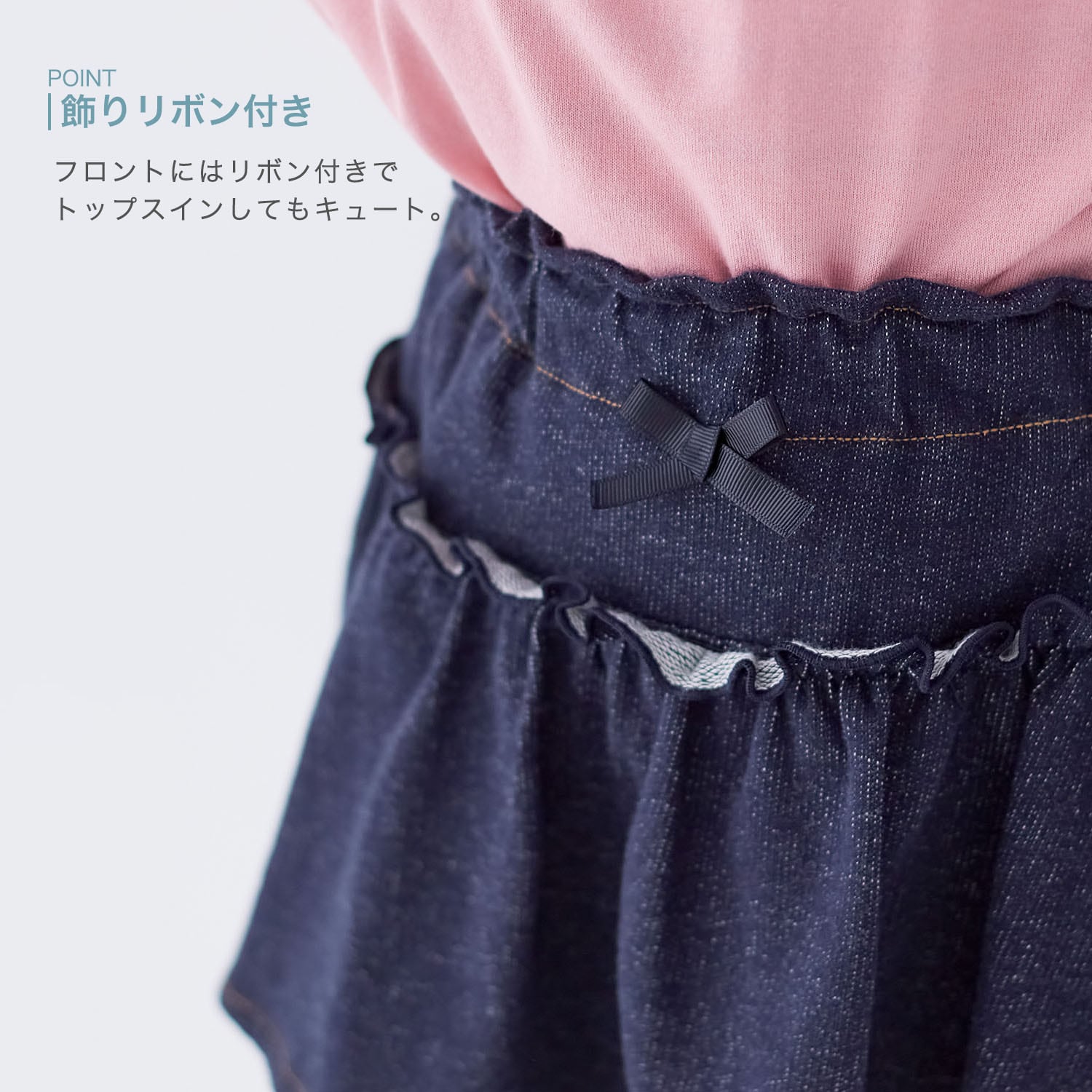 ・フロントの飾りリボンで、トップスをインしても可愛い