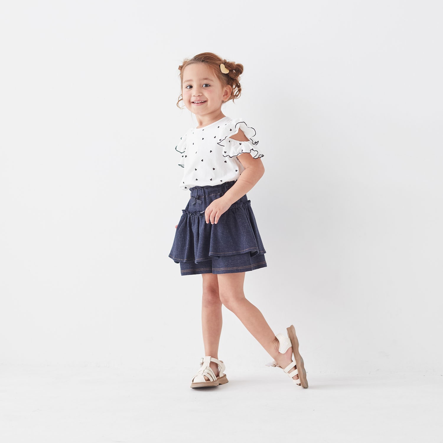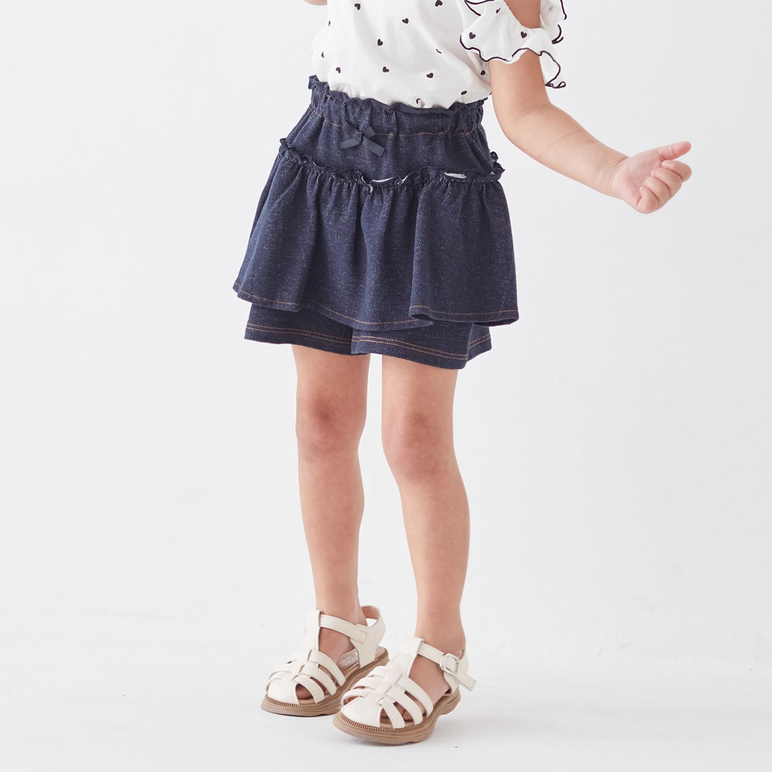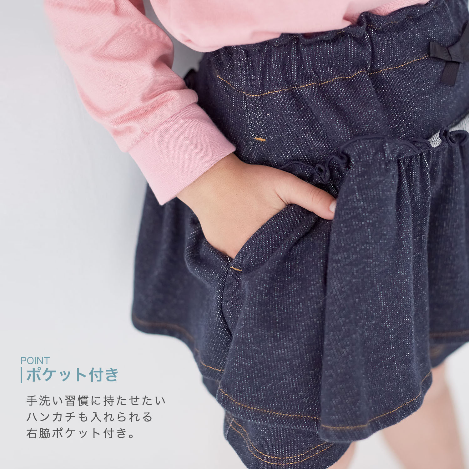 デニム風ニットギャザーフリルキュロット 【子供ズボン】