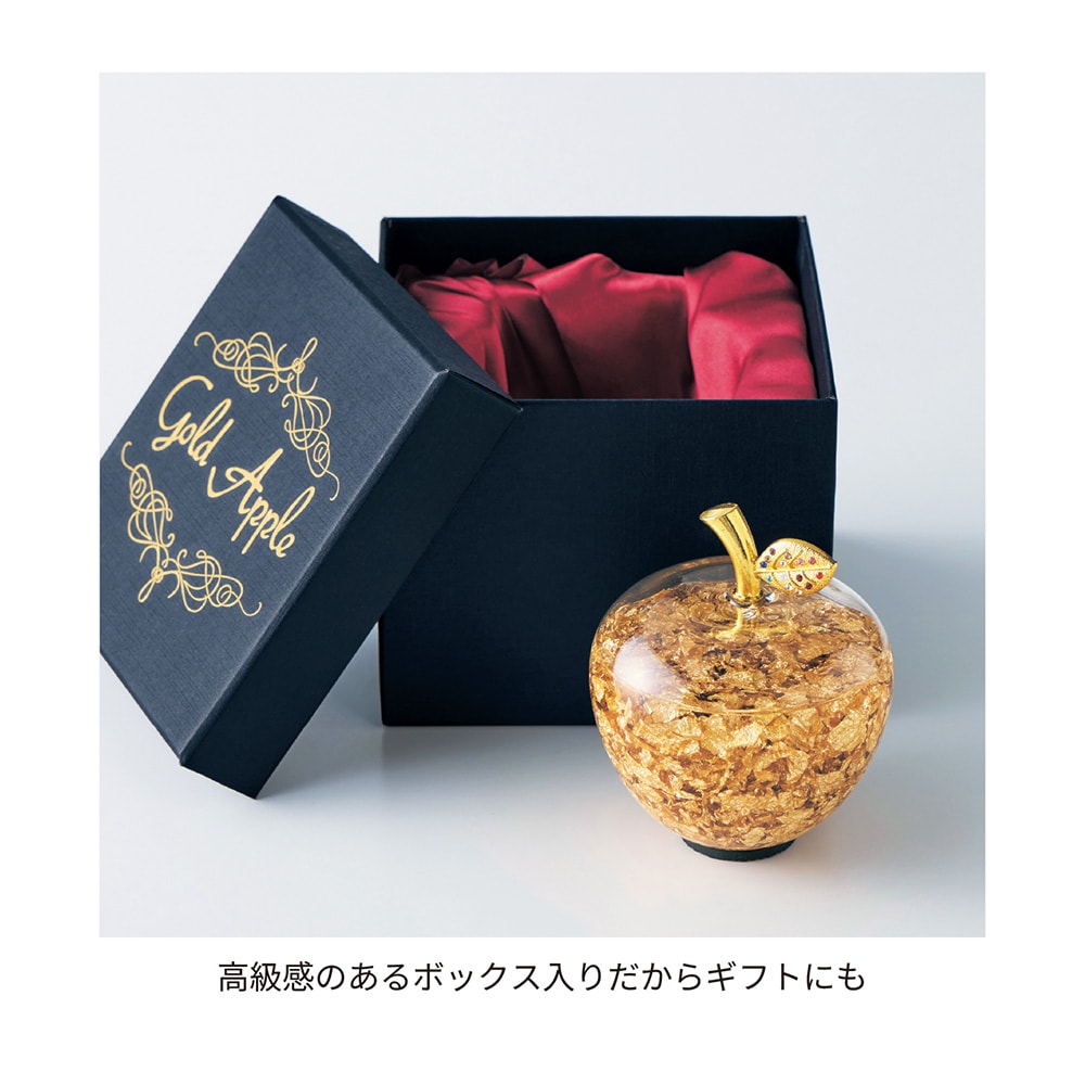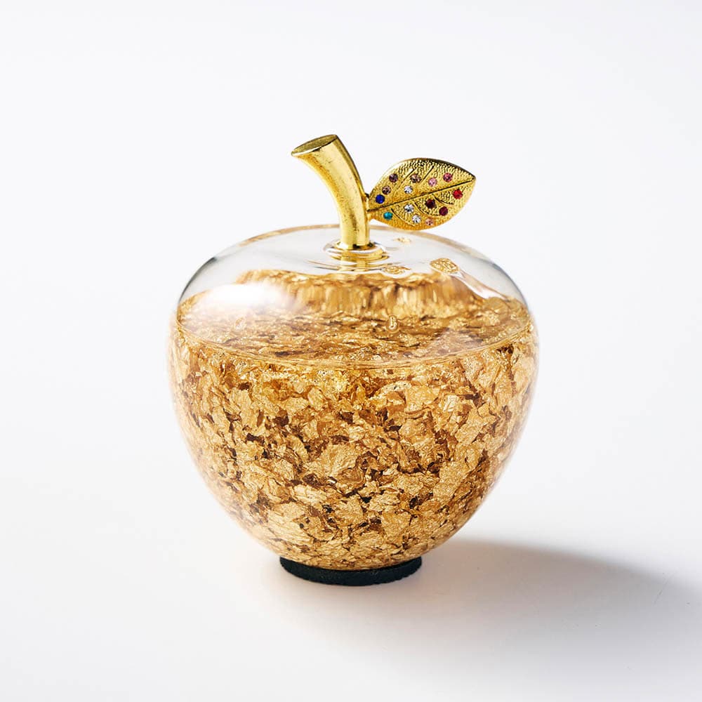 ●ガラス製のりんごの中でフェイクの金箔が揺れて輝くオブジェ