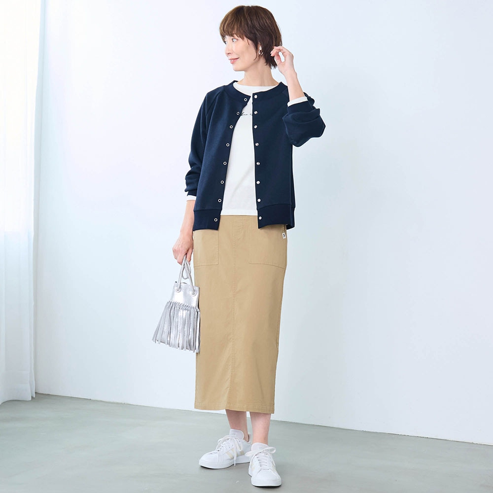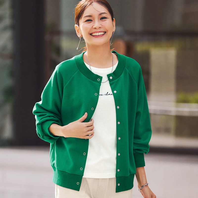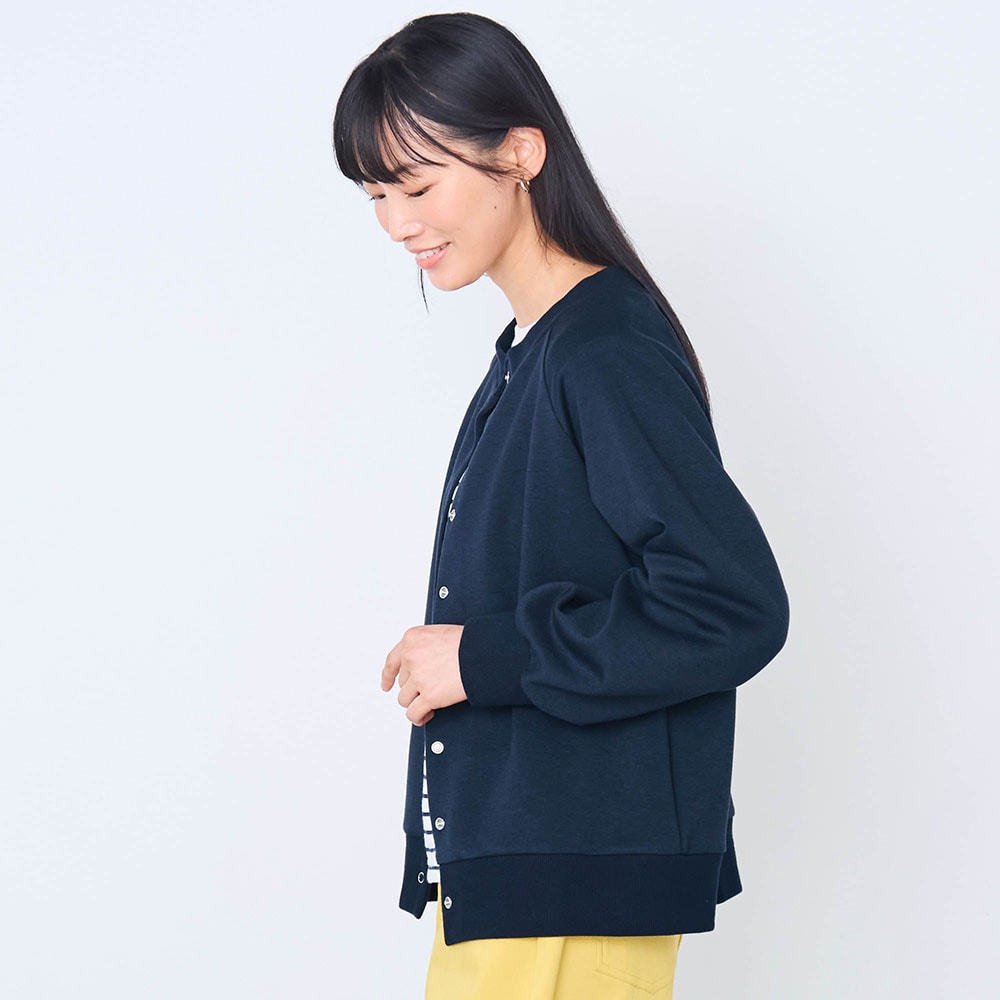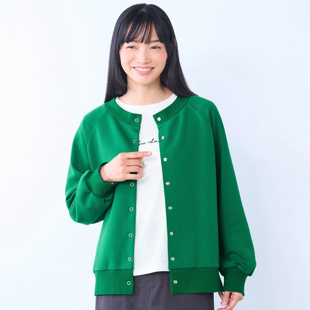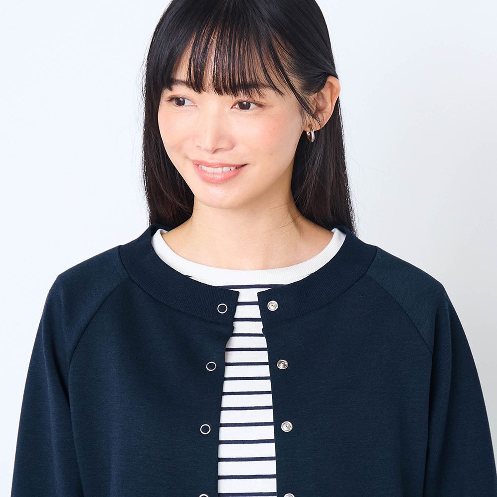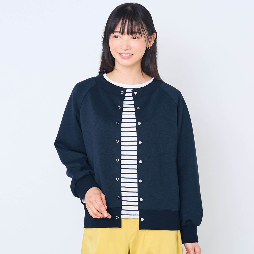 カーディガンはしっかりした生地でした。ラグラン袖なところもよかった。第一ホックと第二ホックを閉めるとその間の生地がたるむので、閉めて着たいときは第一ホックのみ外してます。なので☆マイナス1。