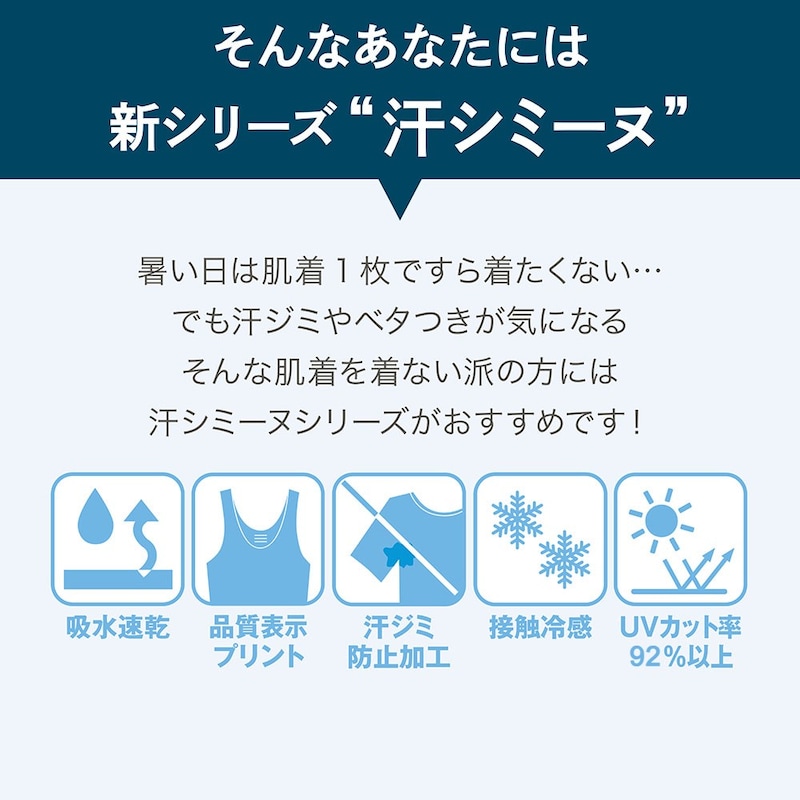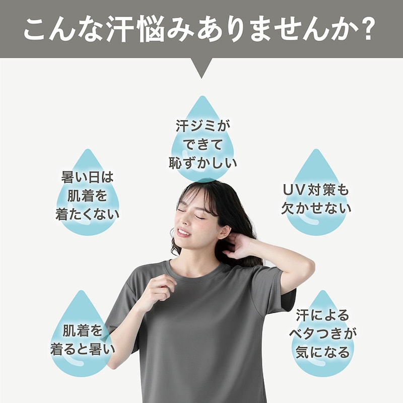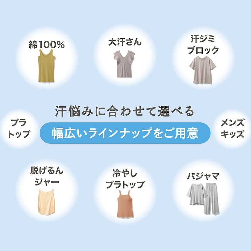 汗ジミを防ぎながら汗のベタつきやニオイ、暑さなどの様々な汗悩みをケアし、快適に過ごせるよう開発したベルメゾンオリジナルの汗対策インナーブランドです。