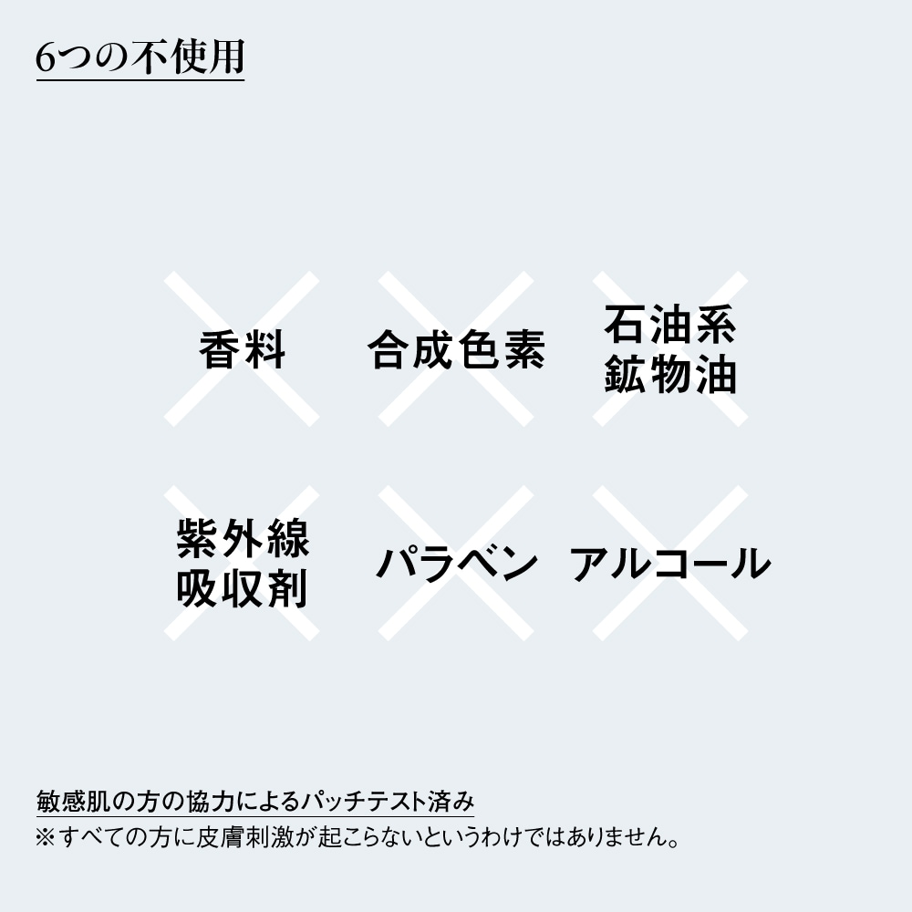 ●香料・合成色素・石油系鉱物油・紫外線吸収剤・パラベン・アルコール不使用