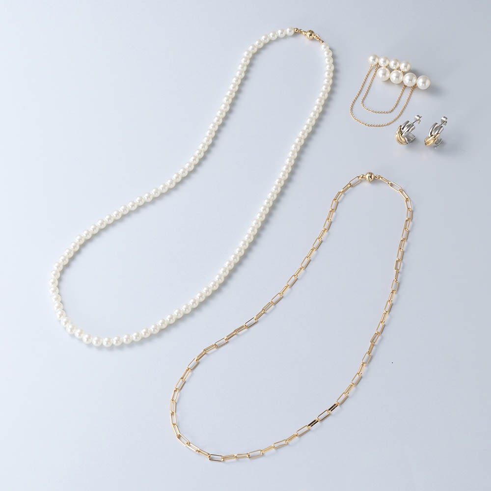 マグネットのネックレスが本当に使いやすい。年齢的にも手先が不器用になってきて細かいのはつけ外しが大変ですが、これはマグネットでくっ付けるだけなのでつけ外しがとても簡単!