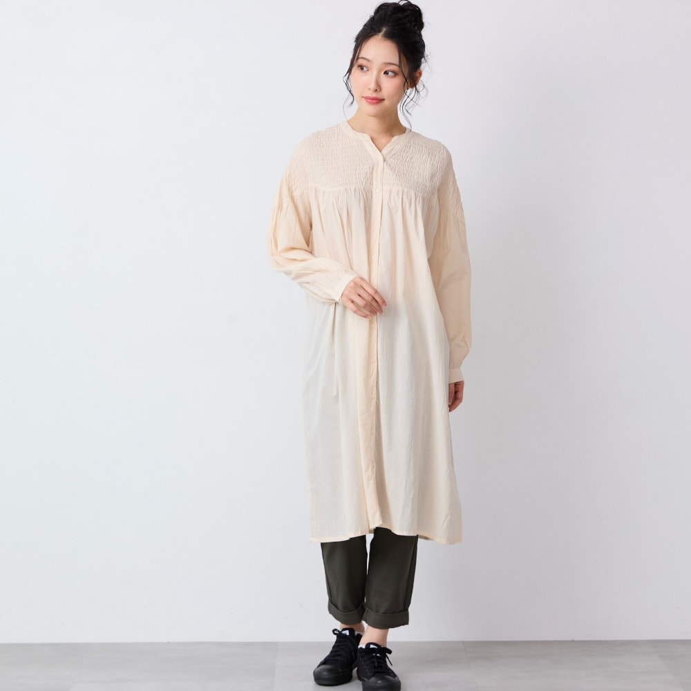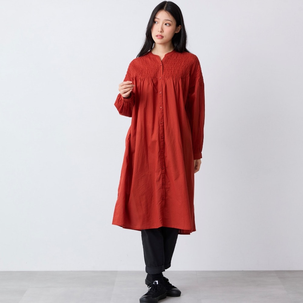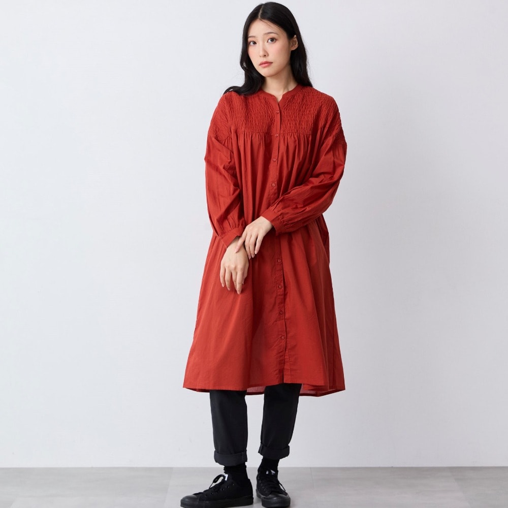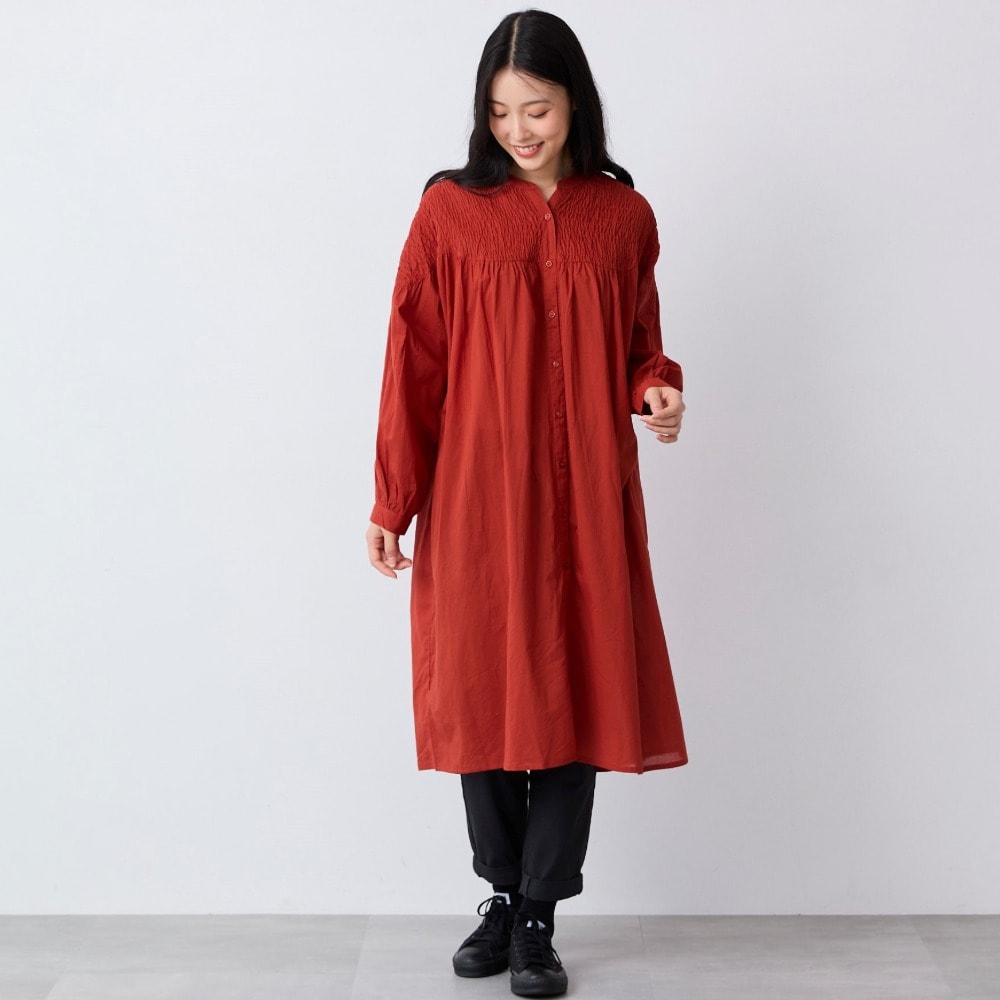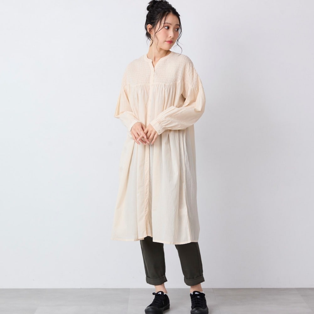 シャーリング前開きワンピース
