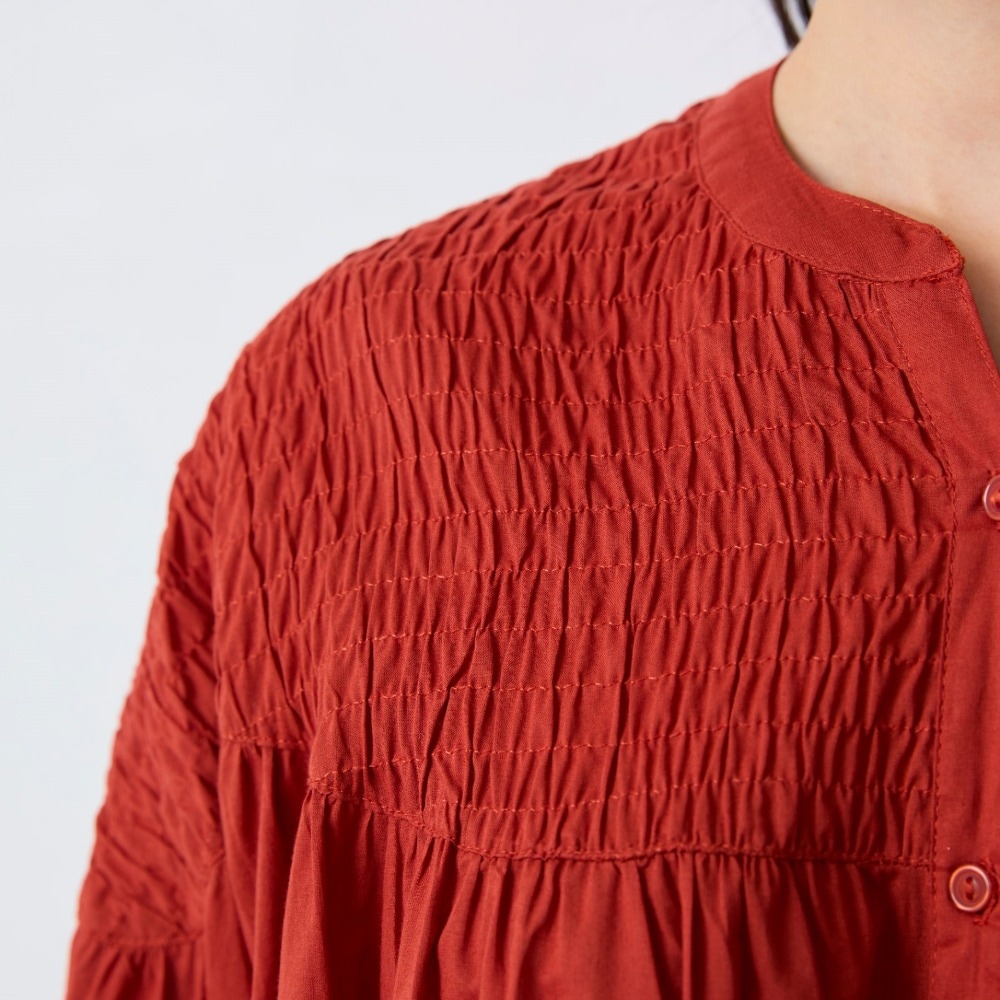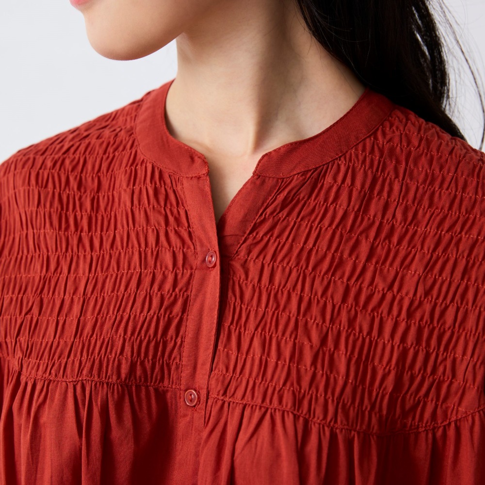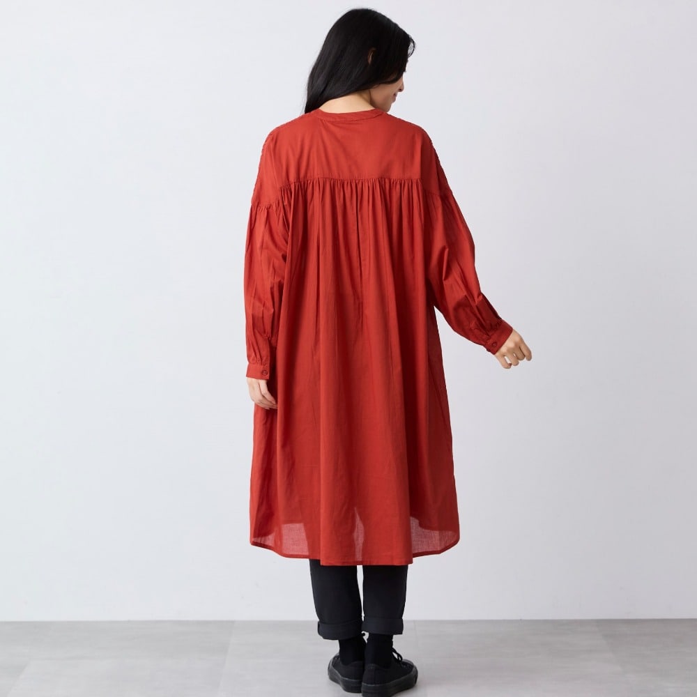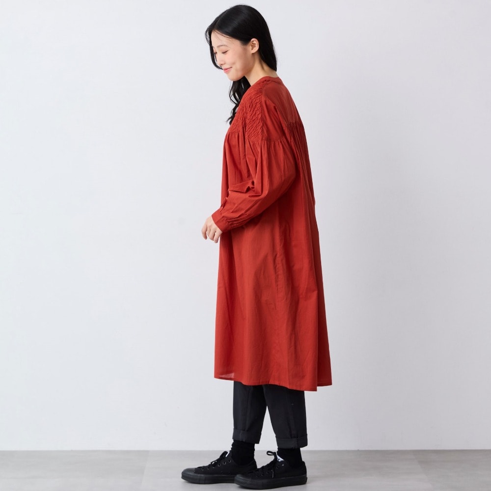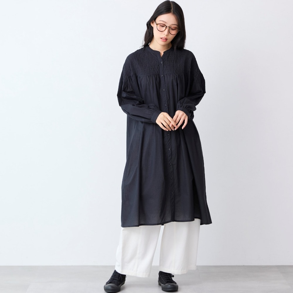 シャーリング前開きワンピース