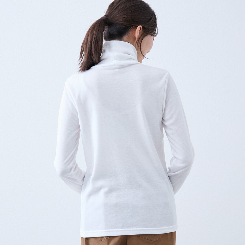 裏起毛で暖かいのですがふんわり軽く、表側は普通のカットソーに見えるので、この時季に着ても「あの人まだ冬物着てる」とはならず、寒がりな私には嬉しいお品です。