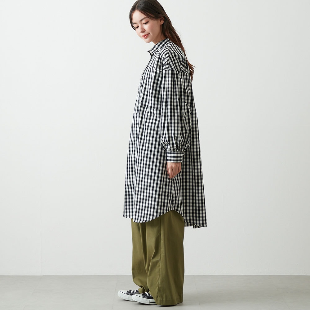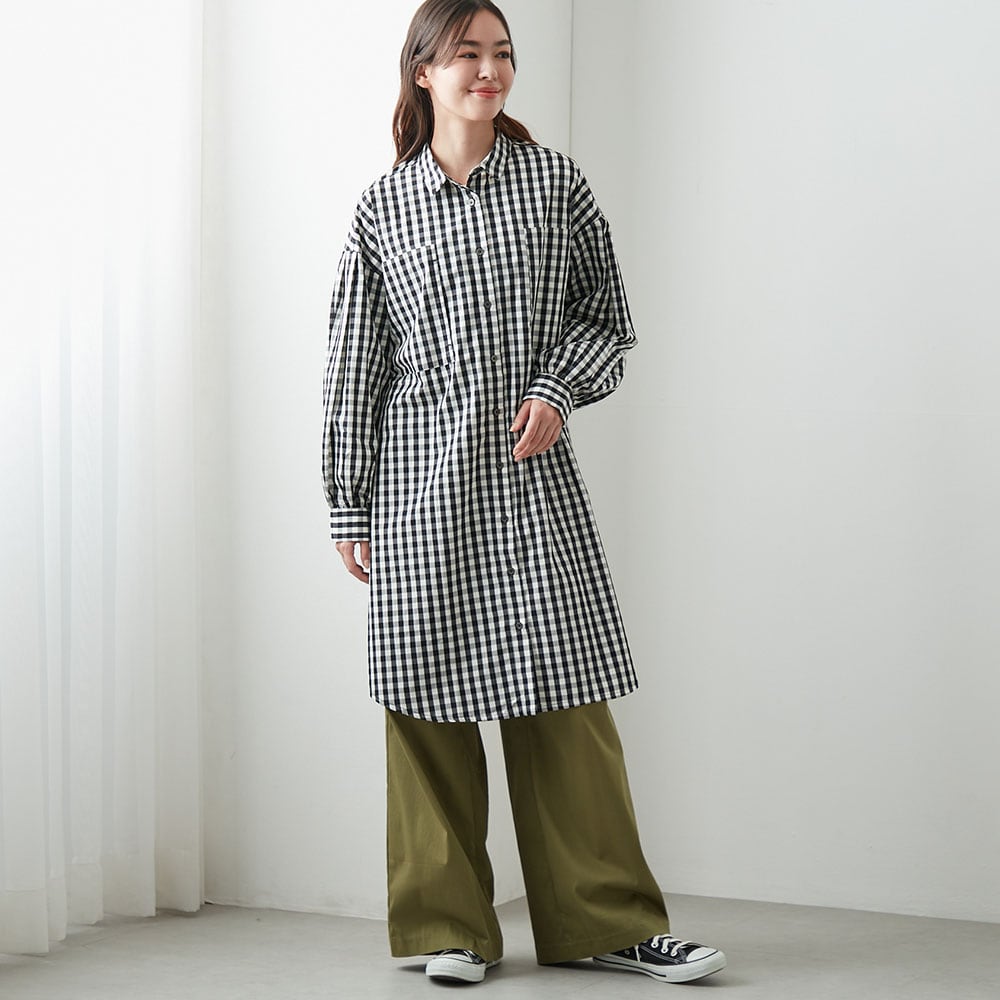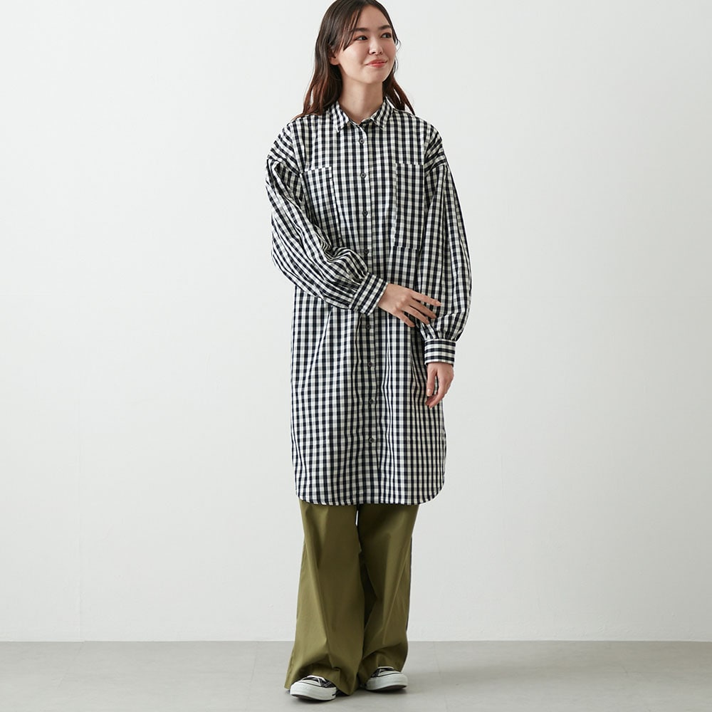 着こなしの幅が広がる、前開き仕様のギンガムチェックワンピース