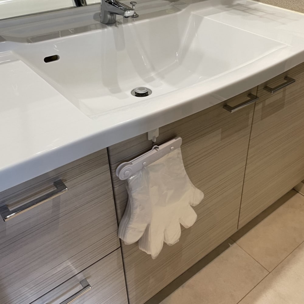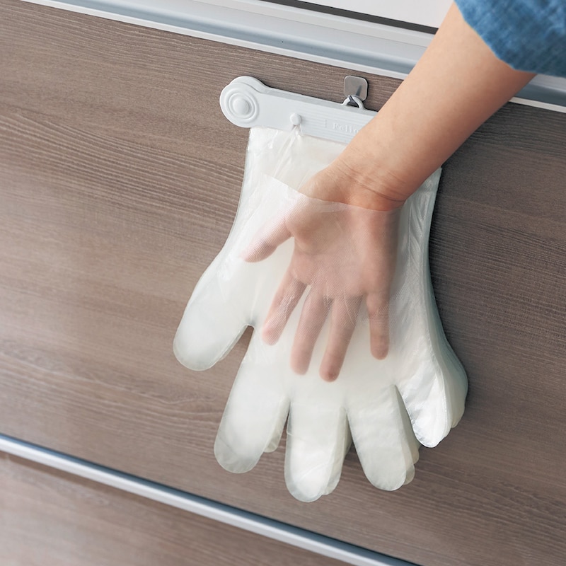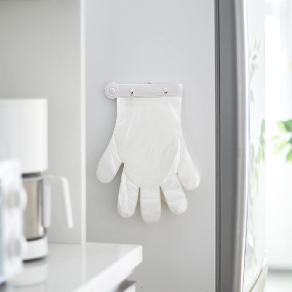 フックがついていて、壁などに吊るせます。