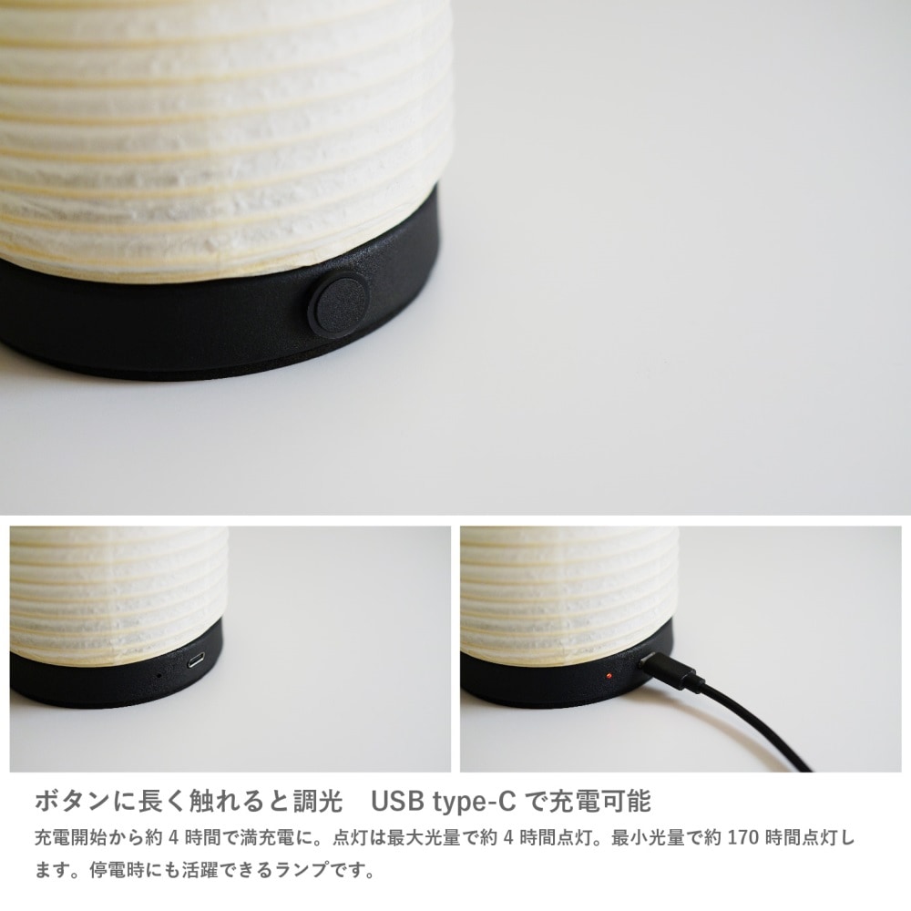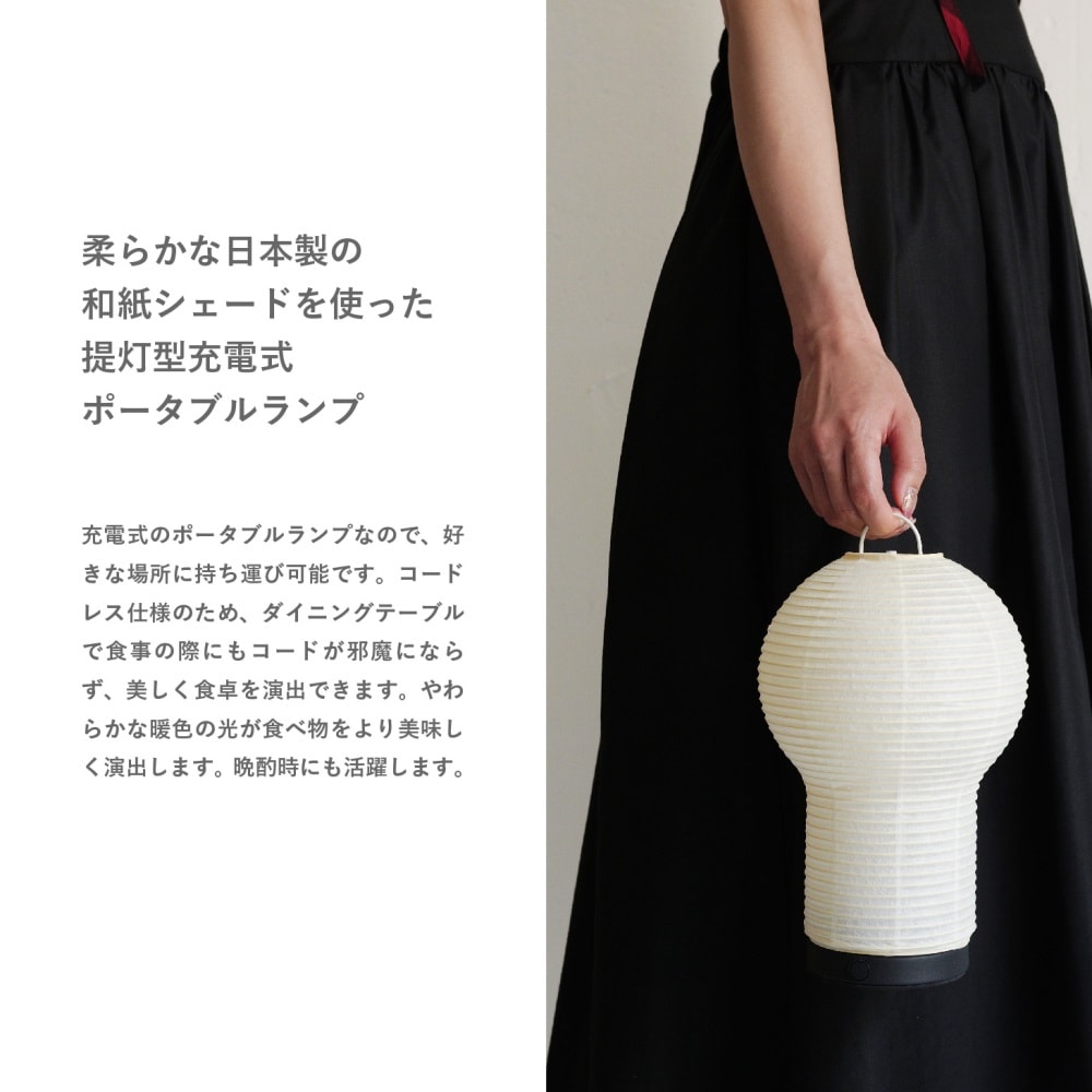 日本の伝統工芸“ちょうちん”で作られたコードレスで使える充電式ポータブルランプ