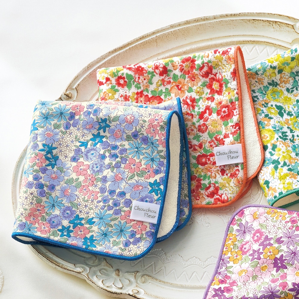 小花柄のガーゼパイルハンカチ
