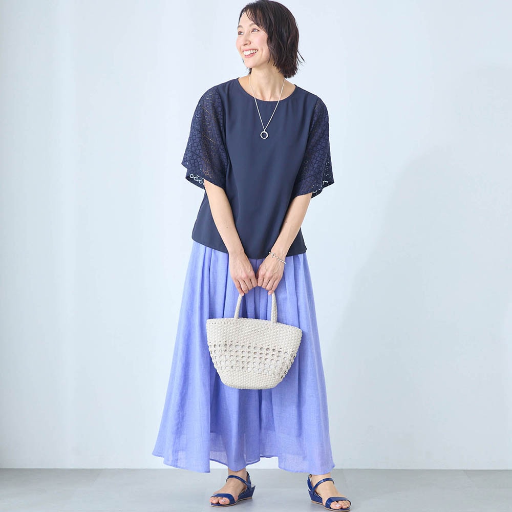 • 肌にはりつきにくく、ガーゼのような軽やかさを持つコットン混ボイル素材