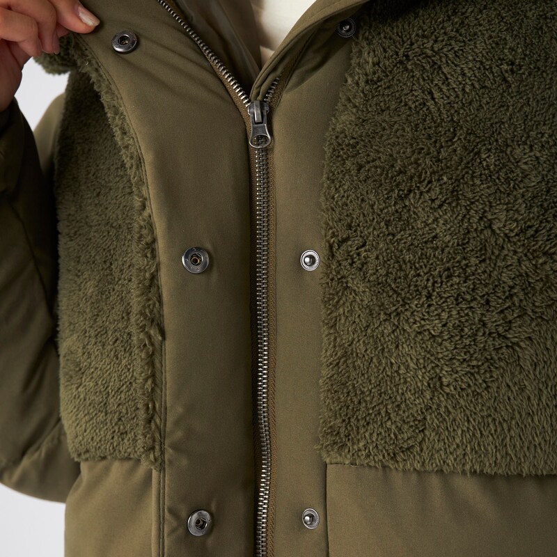 色もデザインも気に入って購入したのですが、着用してみるともこもこしていて太ってみえます。