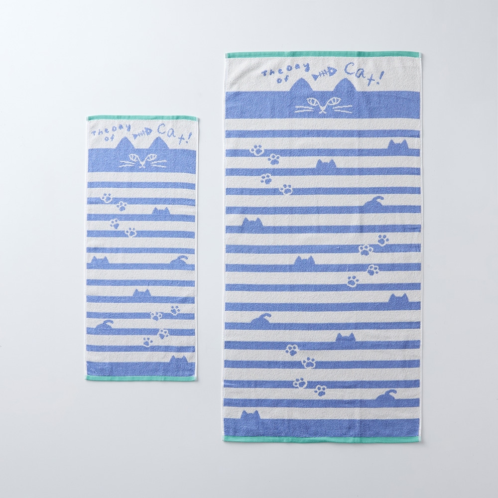 ネコデザインの可愛いタオル<フェイスタオル2枚/バスタオル1枚>