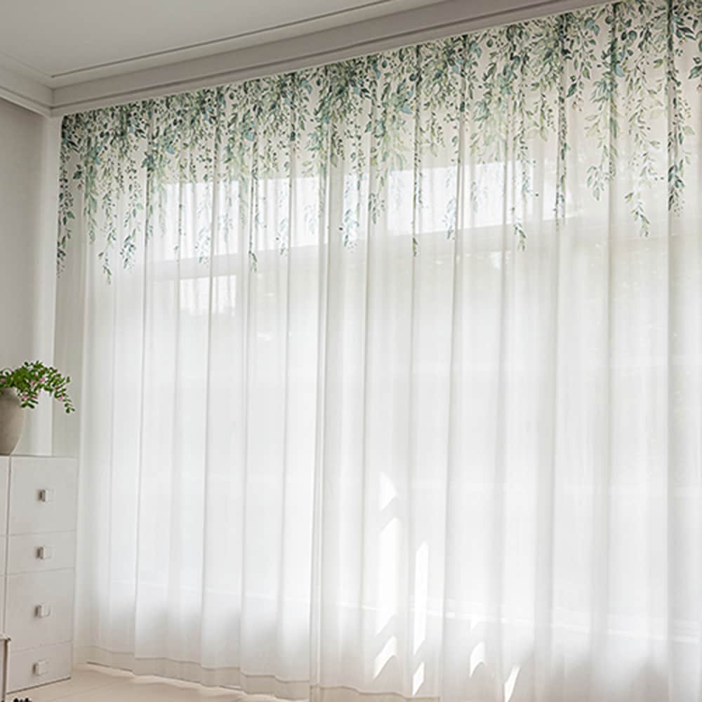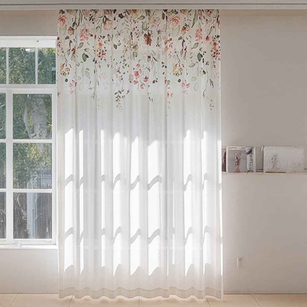 ●大胆な絵羽柄のプリントをあしらったレースカーテン