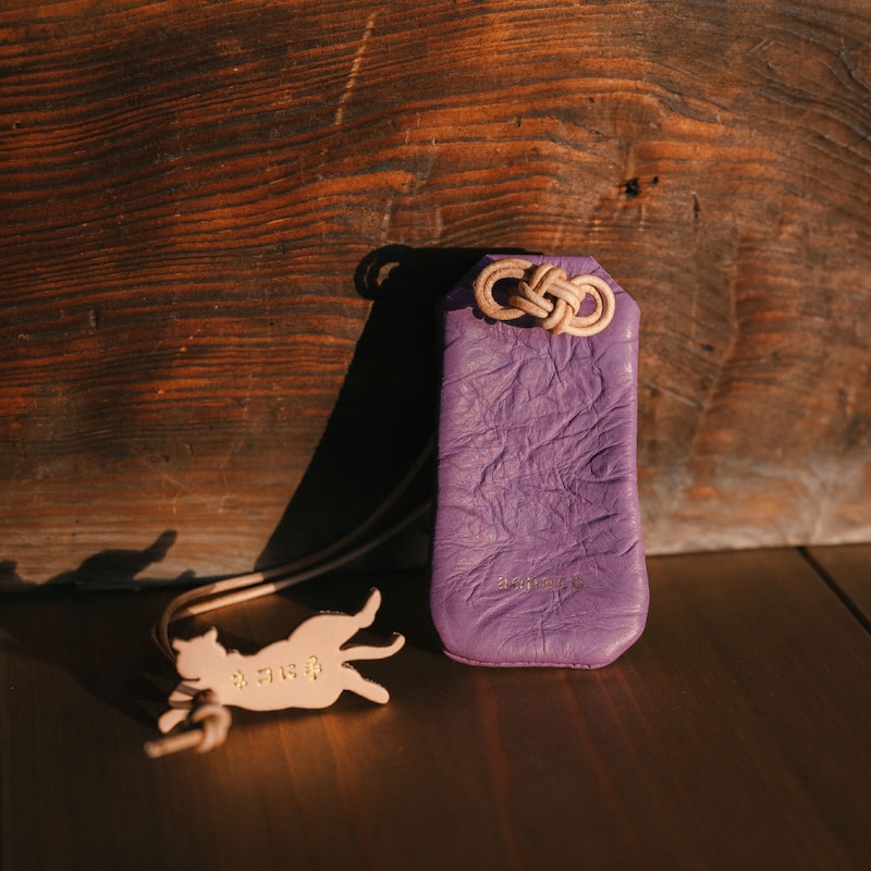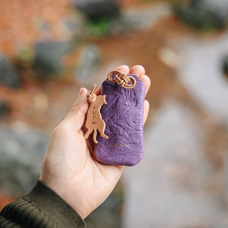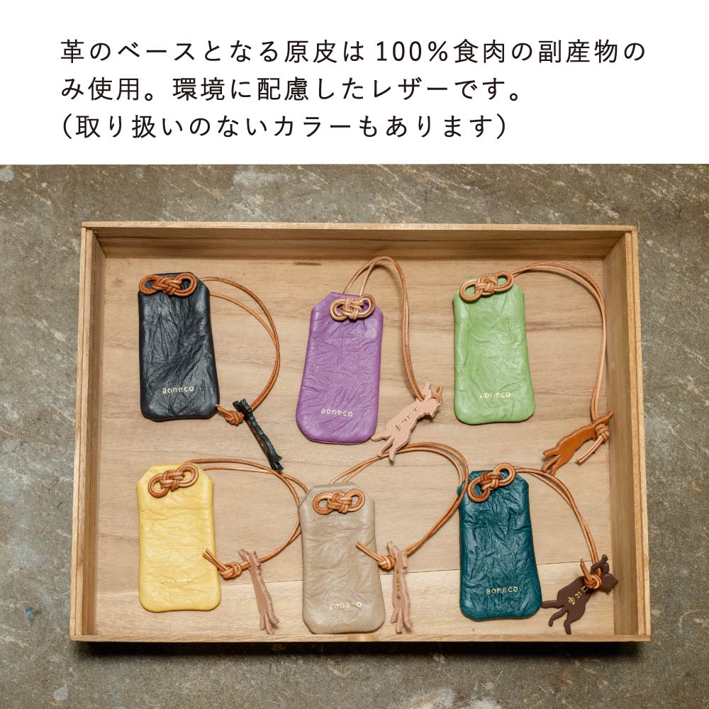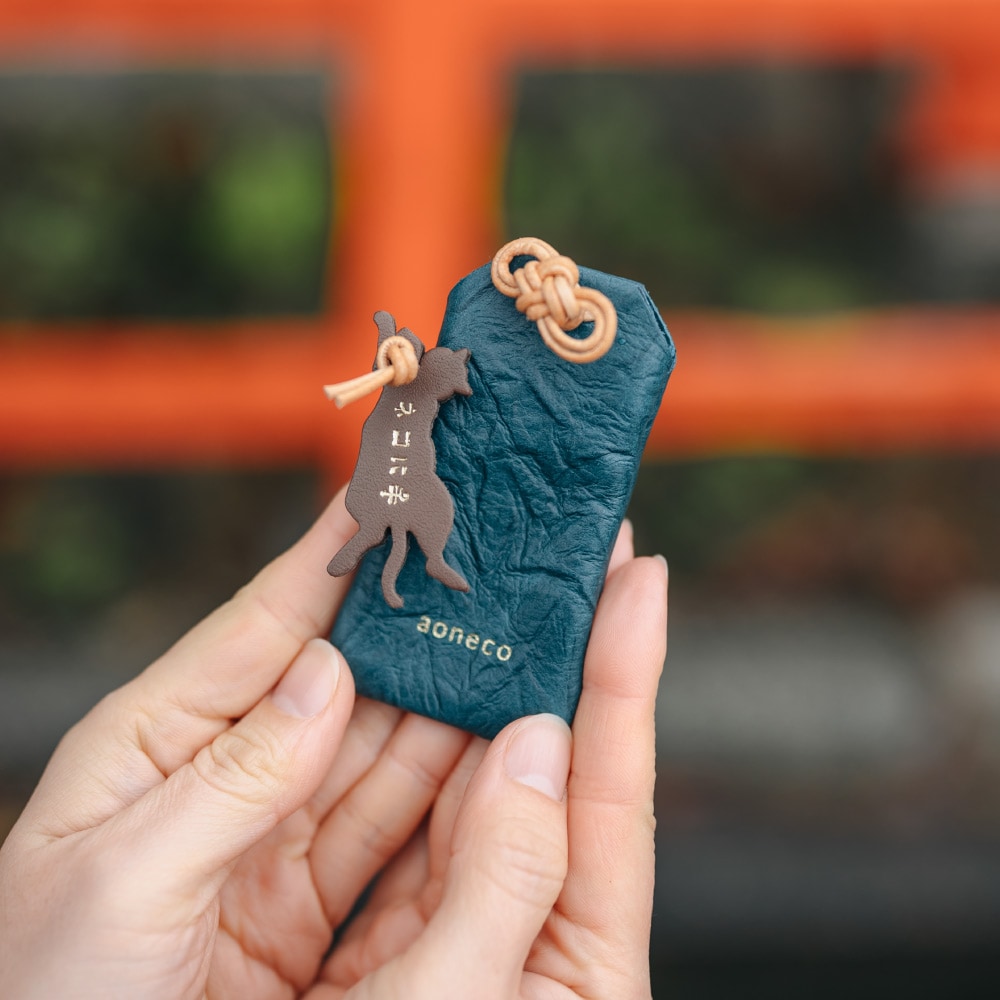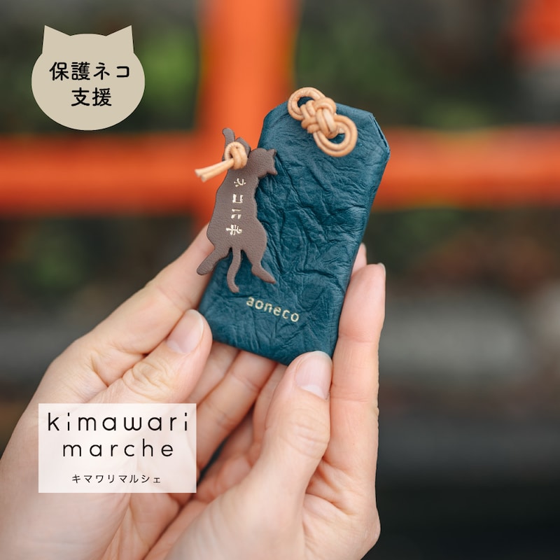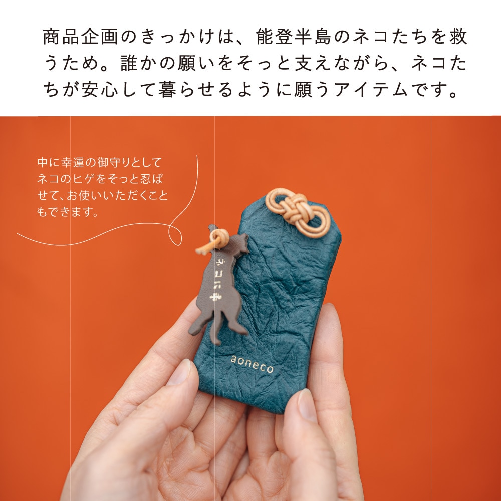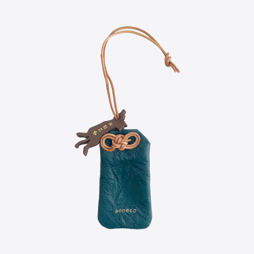 環境に配慮した革を使用した「aoneco(アオネコ)」のネコに手_御守り。