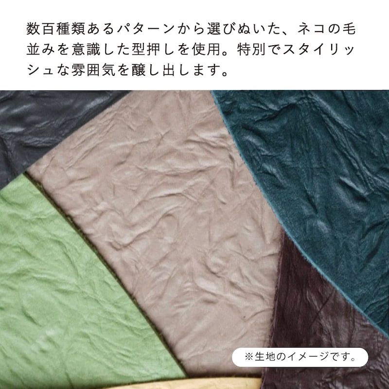数百種類あるパターンから選びぬいた、ネコの毛並みを意識した型押しを使用
