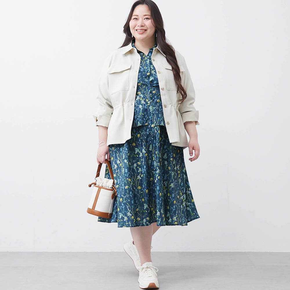ウエストペプラムで体型カバー。上品なスキッパーワンピ