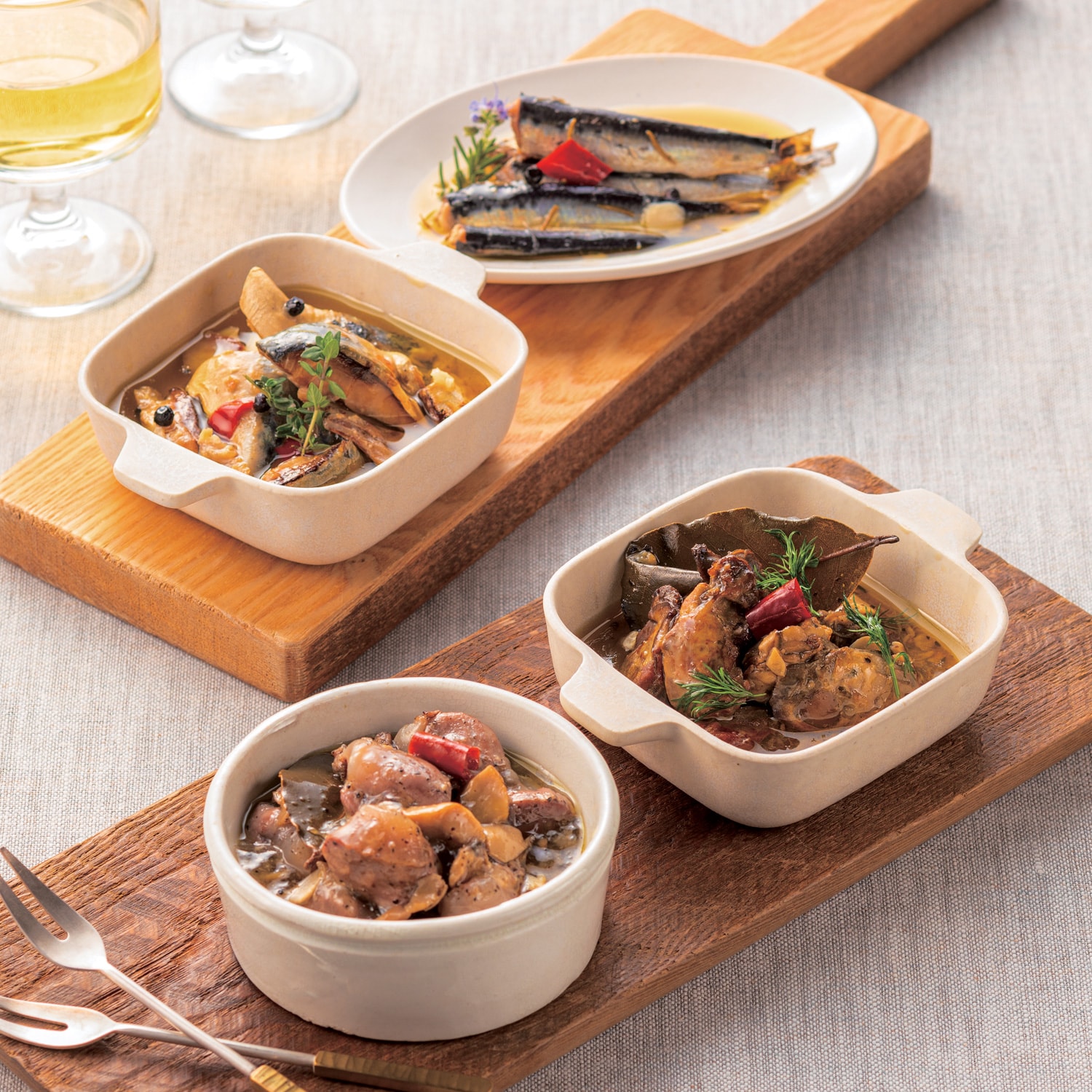 瀬戸内産を中心とした国産原料を使い、オイルでじっくり煮込み、ワインやビールにぴったりの味に仕上げました。常温保存でき、そのままでも、また少し温めても美味しくお召しあがりいただけます。