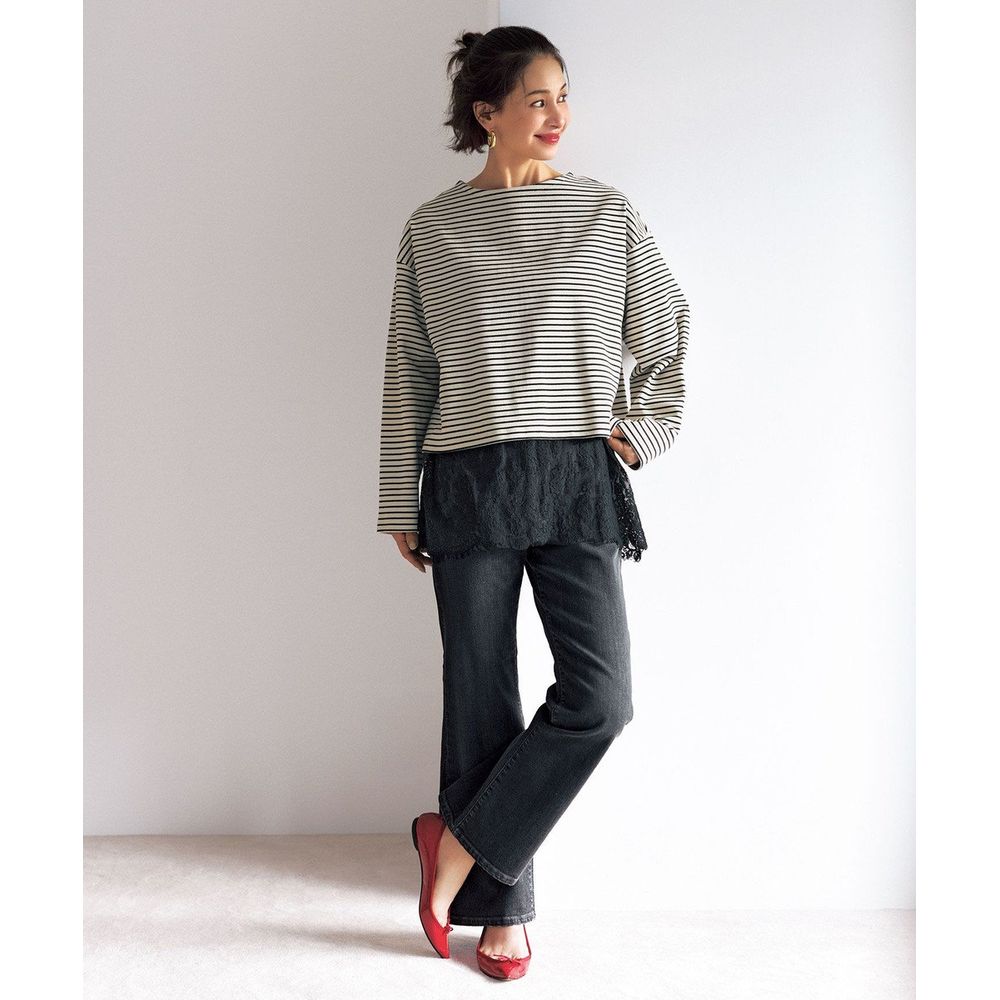 脚のラインを美しく見せるフレアデニム。